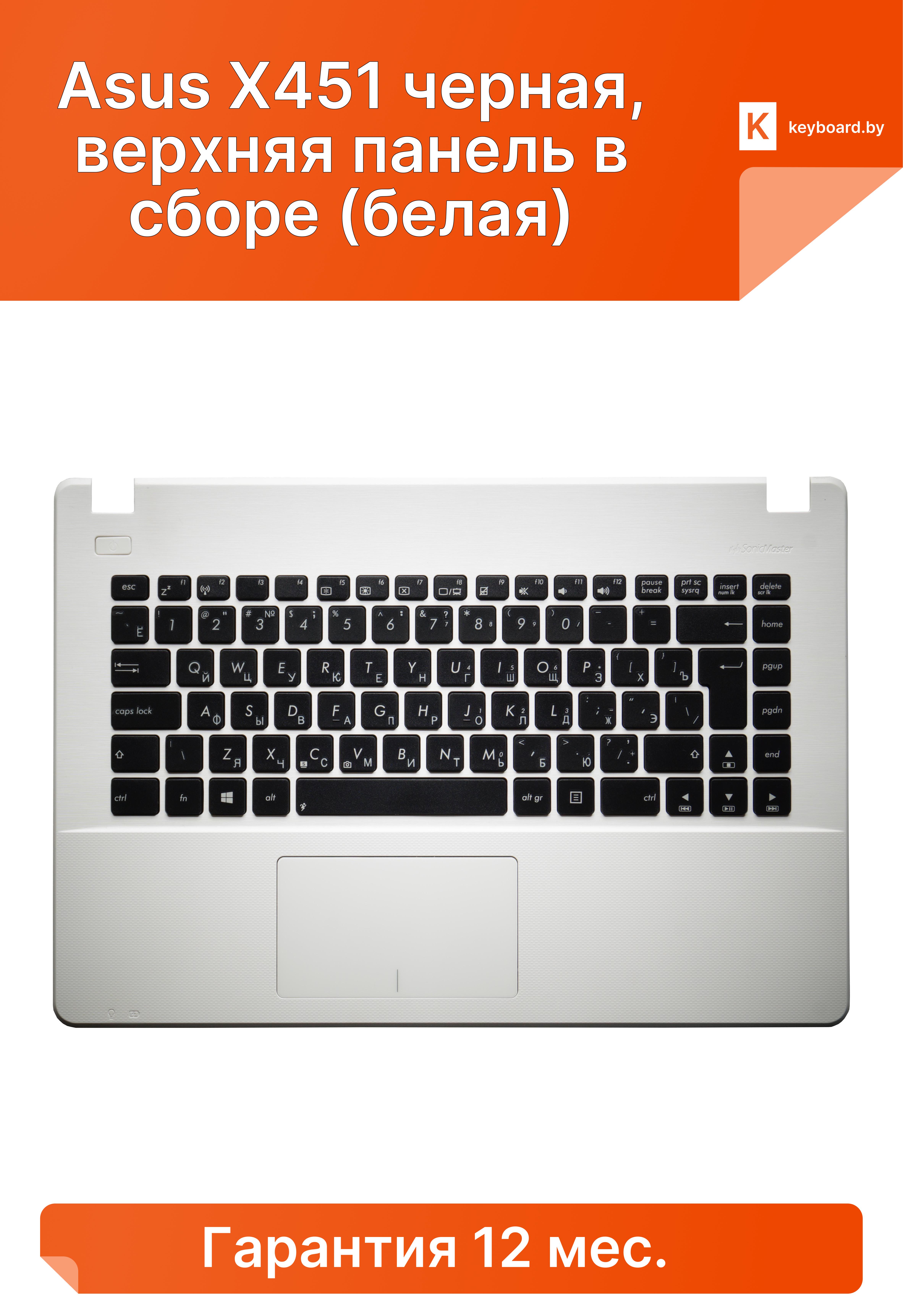 Клавиатура для ноутбука asus x451 черная, верхняя панель в сборе (белая)