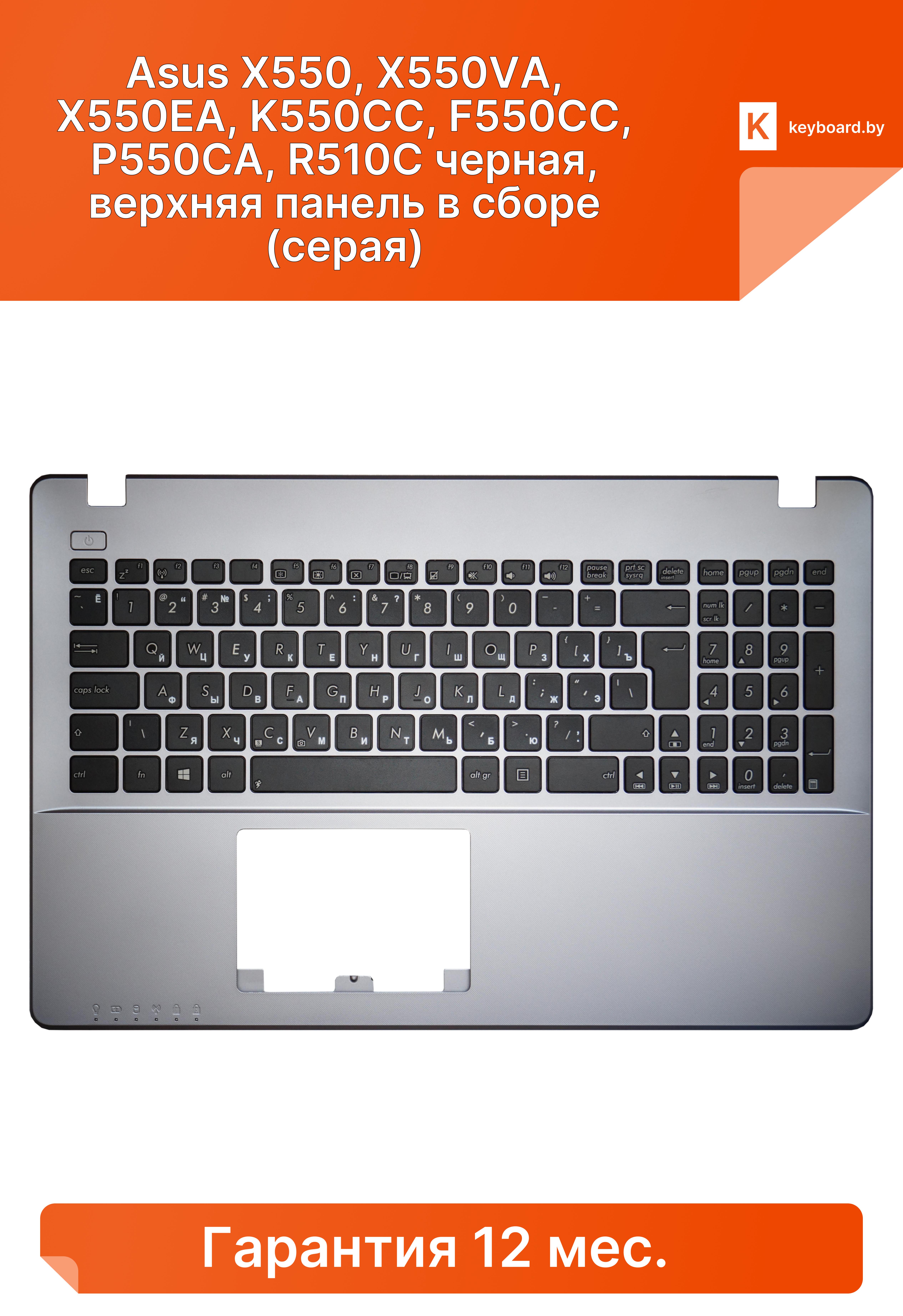 Клавиатура для ноутбука asus x550, x550va, x550ea, k550cc, f550cc, p550ca, r510c черная, верхняя панель в сборе (серая)