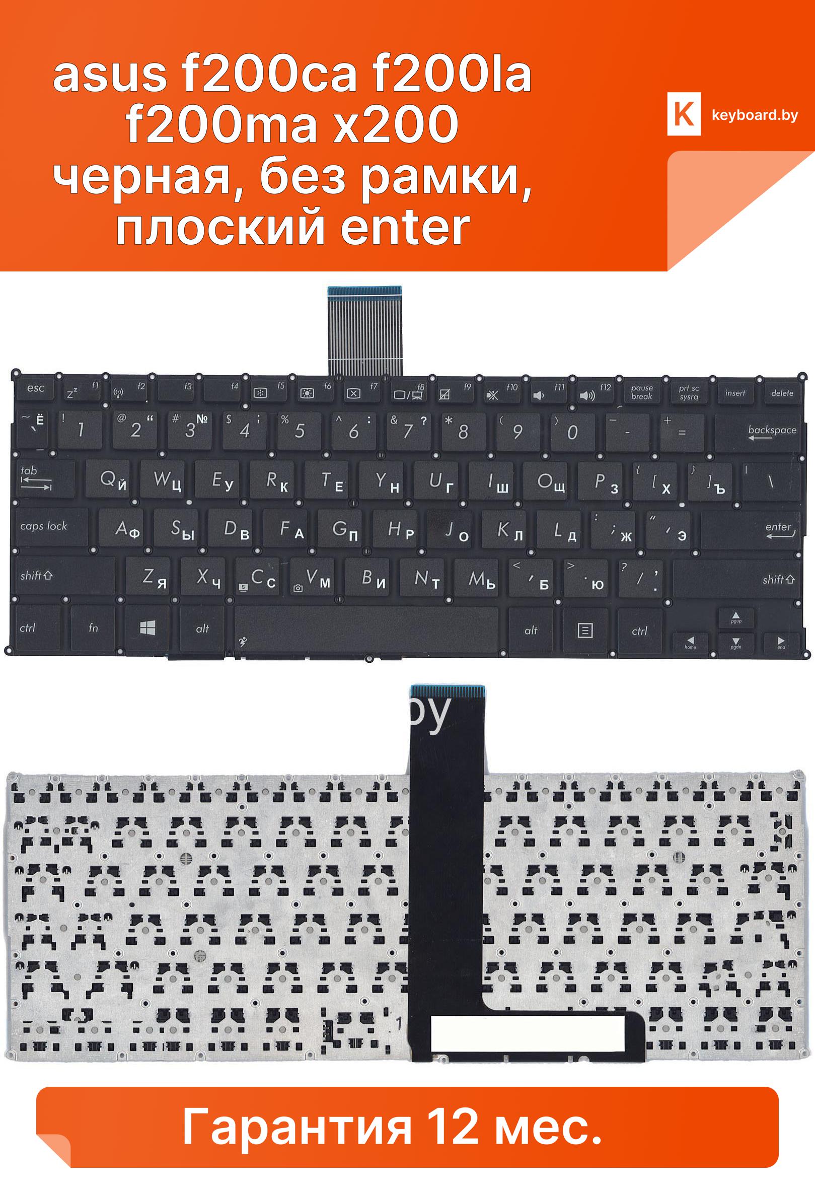 Клавиатура для ноутбука asus f200ca f200la f200ma x200 черная, без рамки, плоский enter