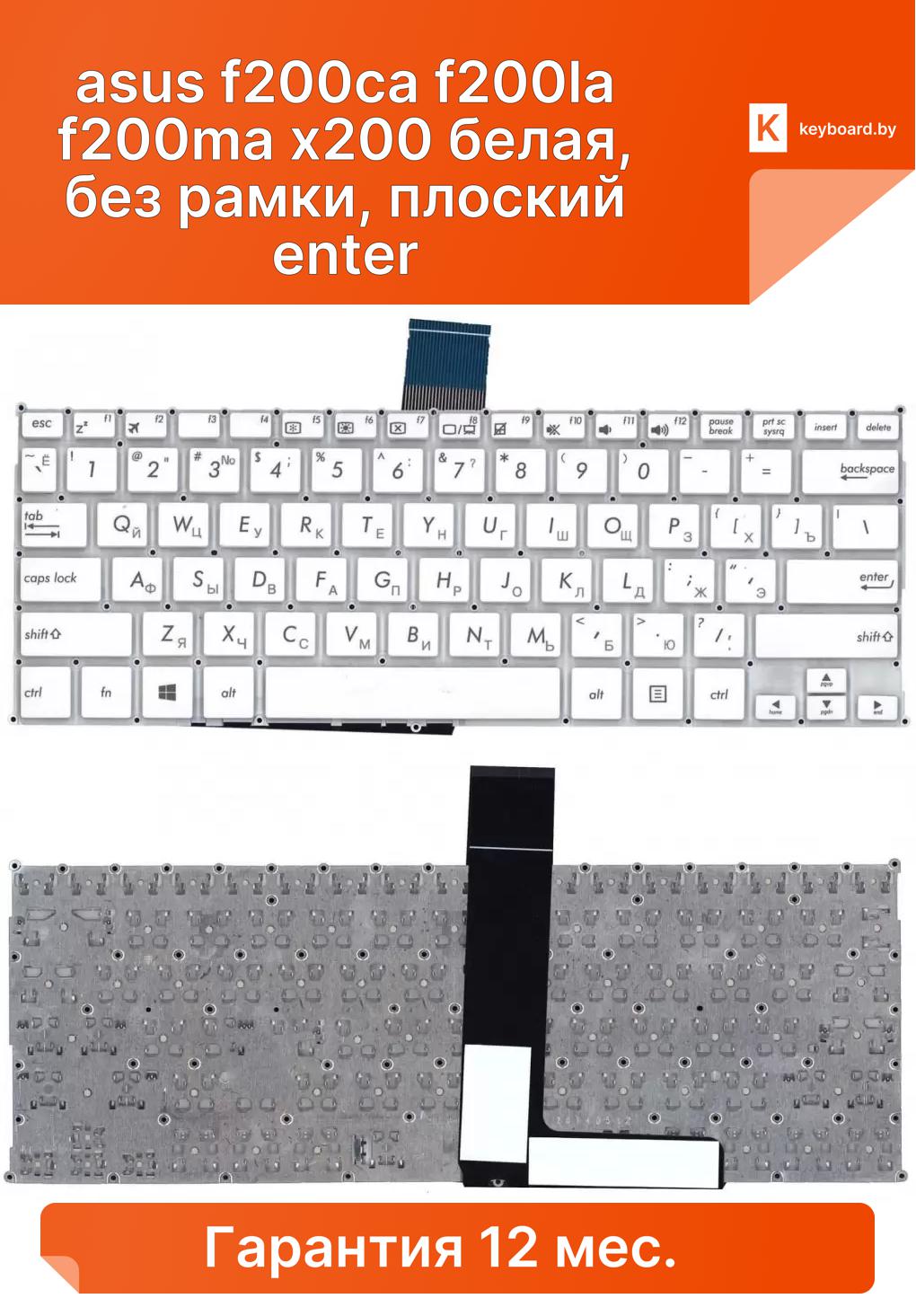 Клавиатура для ноутбука asus f200ca f200la f200ma x200 белая, без рамки, плоский enter