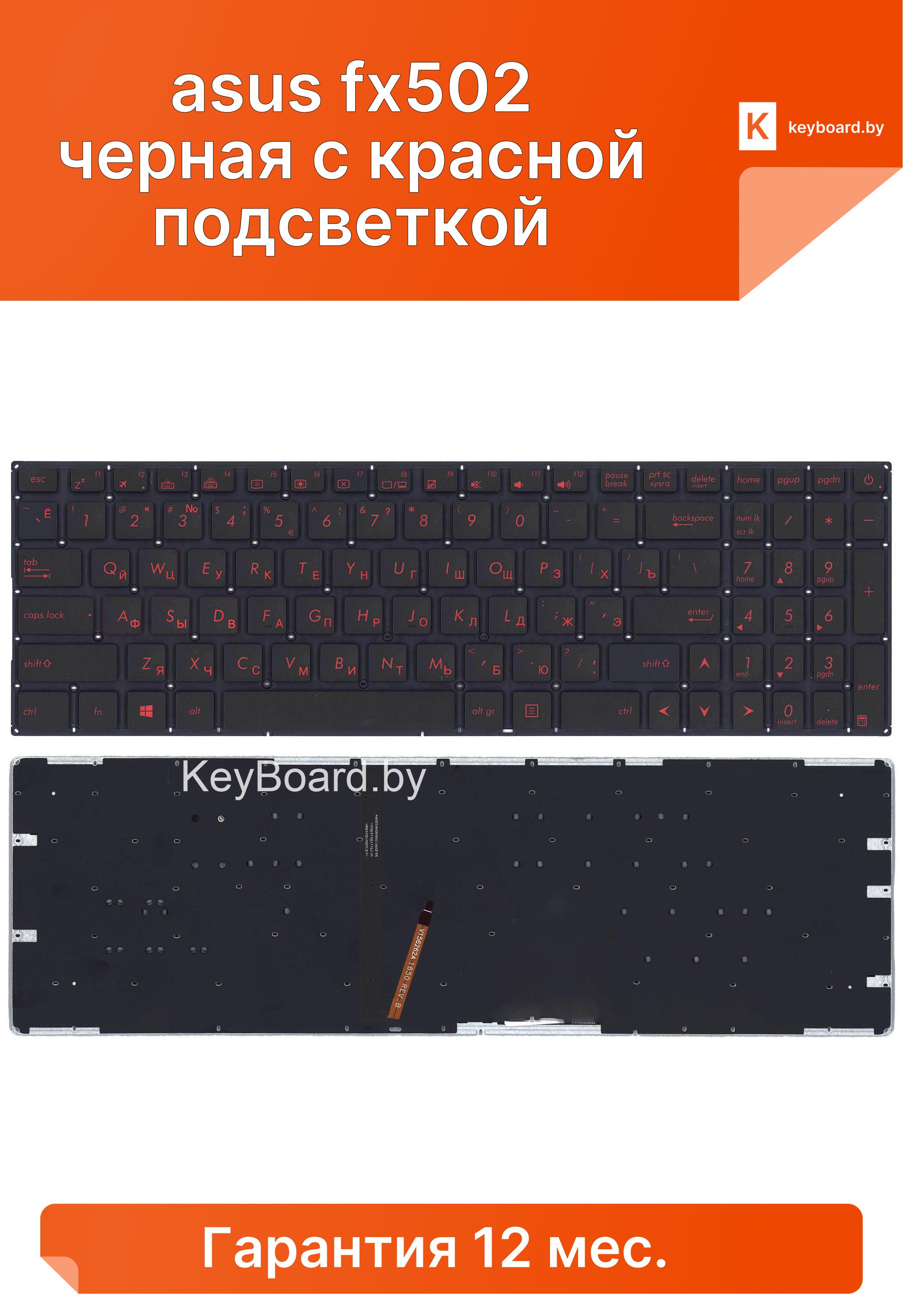 Клавиатура для ноутбука asus fx502 черная с красной подсветкой