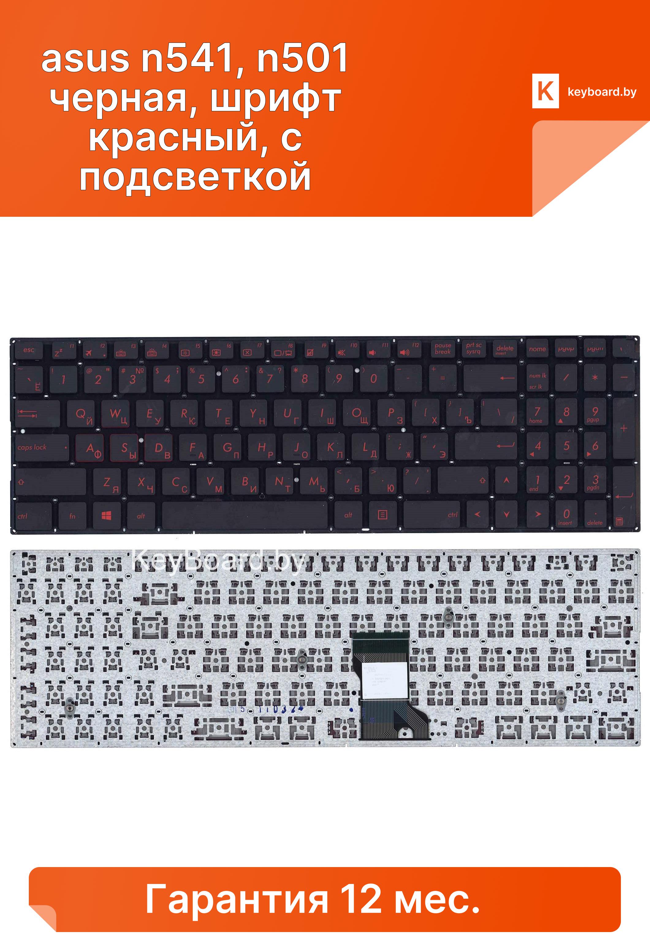 Клавиатура для ноутбука asus n541, n501 черная, шрифт красный, с подсветкой