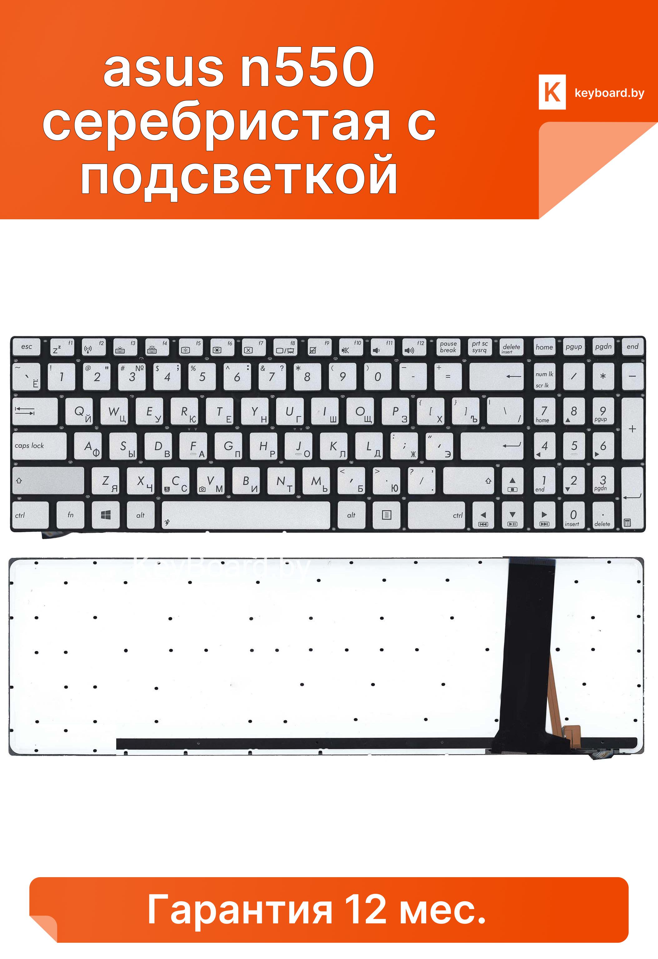 Клавиатура для ноутбука asus n550 серебристая с подсветкой
