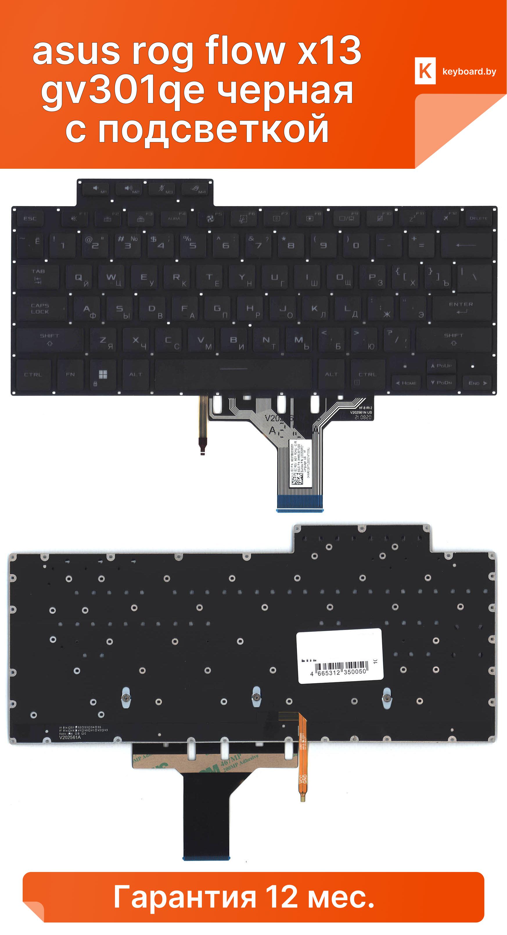 Клавиатура для ноутбука asus rog flow x13 gv301qe черная с подсветкой