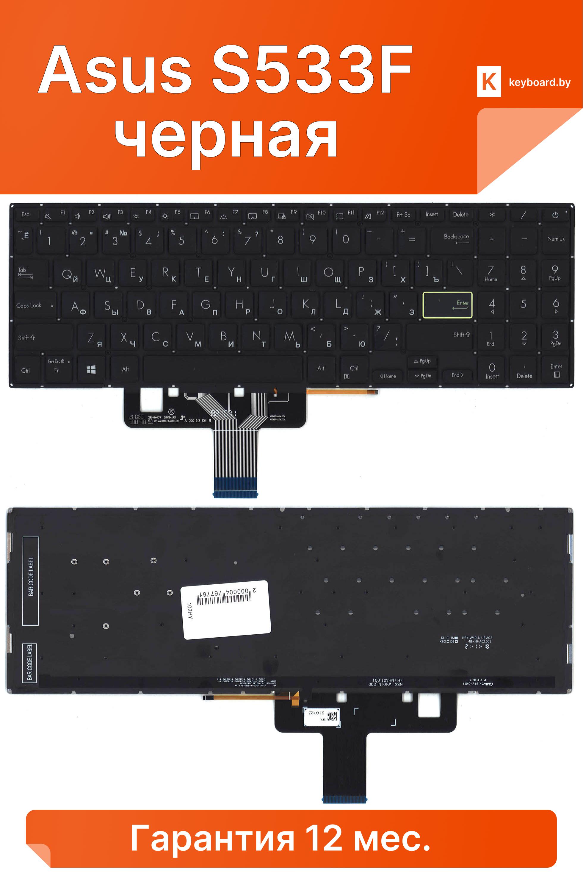 Клавиатура для ноутбука asus s533f черная