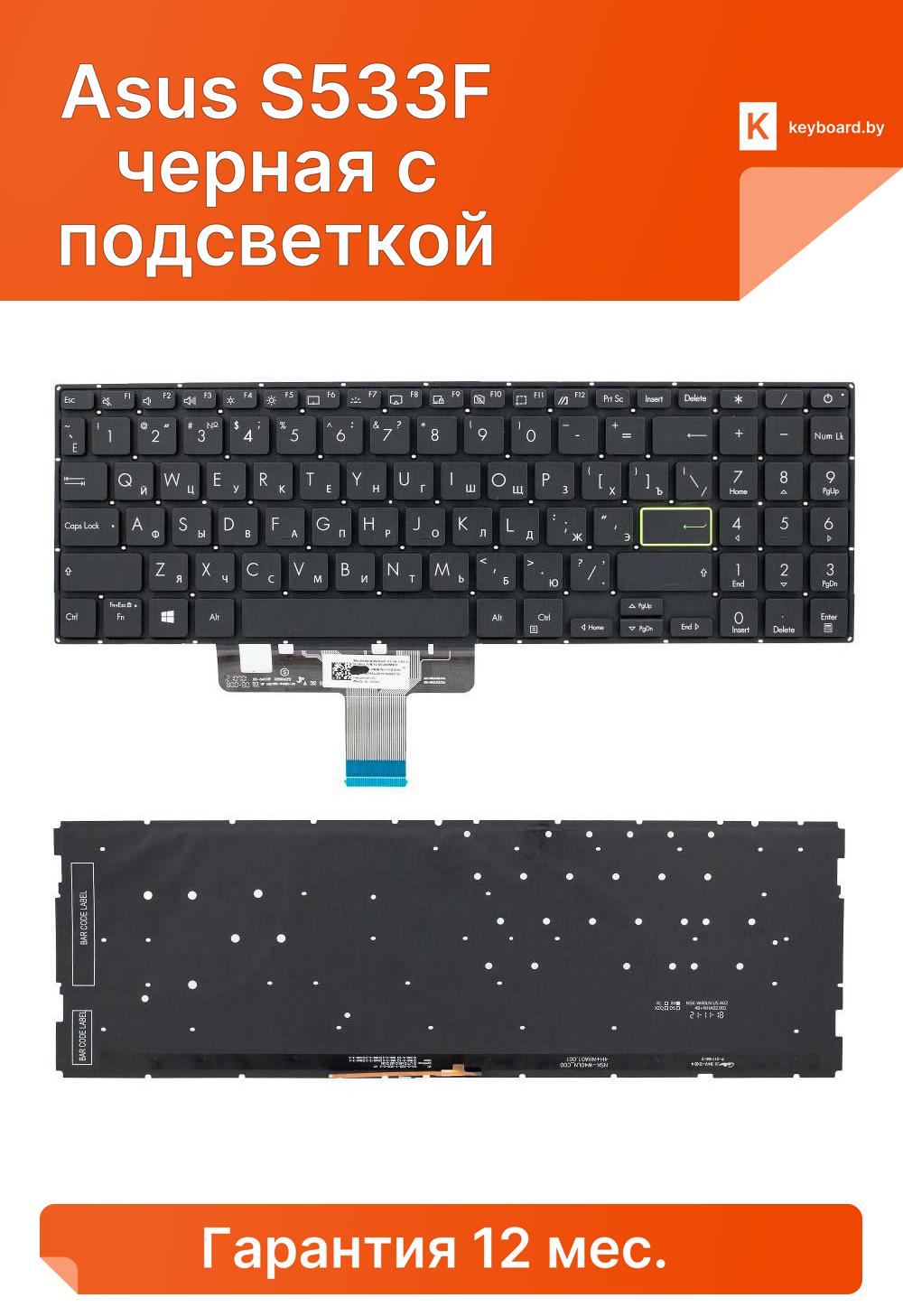 Клавиатура для ноутбука asus s533f черная с подсветкой