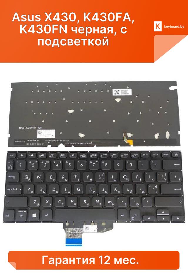 Клавиатура для ноутбука asus x430, k430fa, k430fn черная, с подсветкой