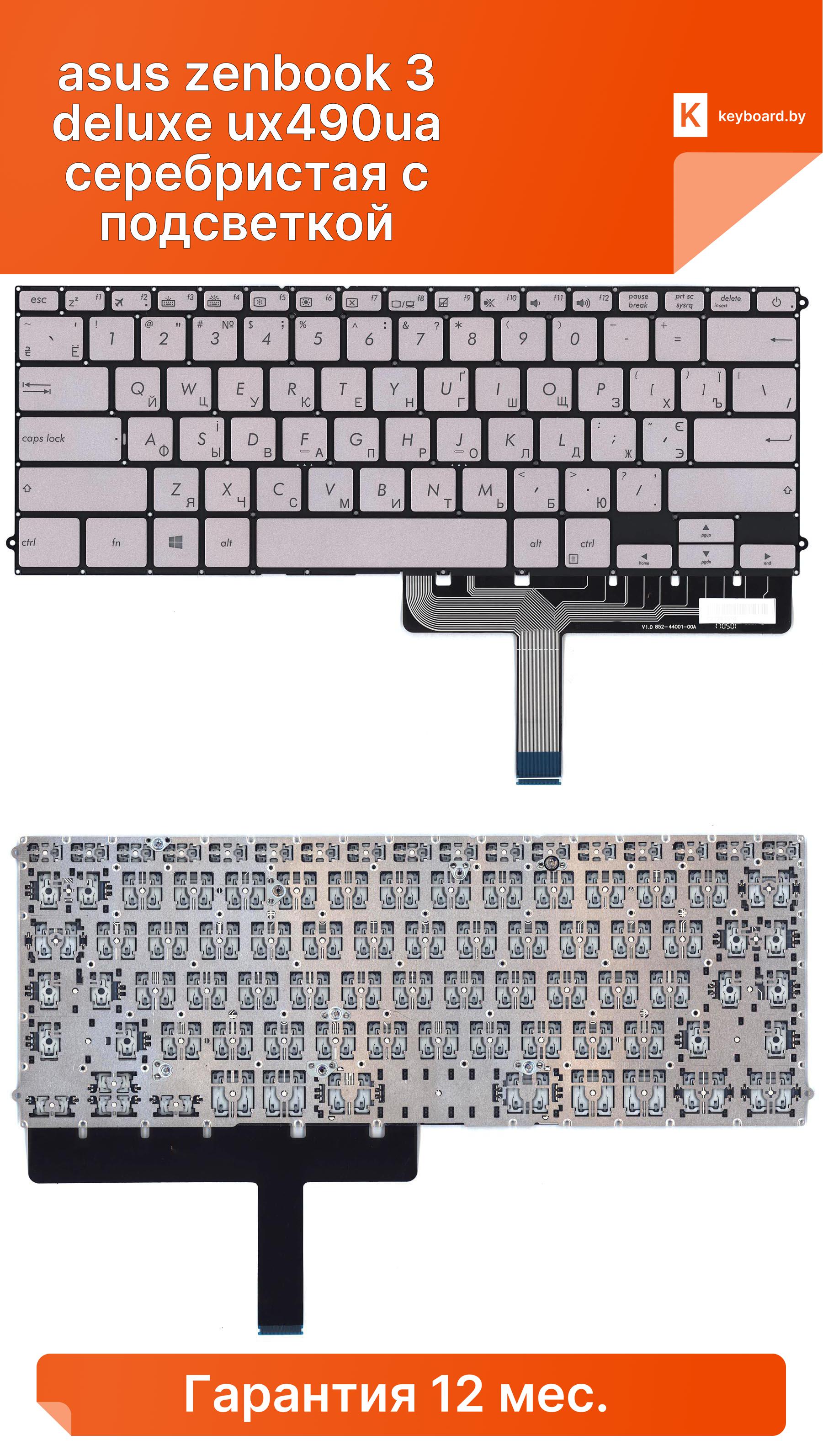 Клавиатура для ноутбука asus zenbook 3 deluxe ux490ua серебристая с подсветкой