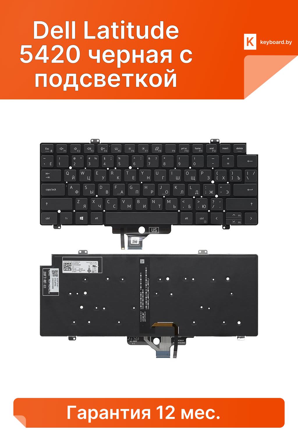 Клавиатура для ноутбука Dell Latitude 5420 черная с подсветкой