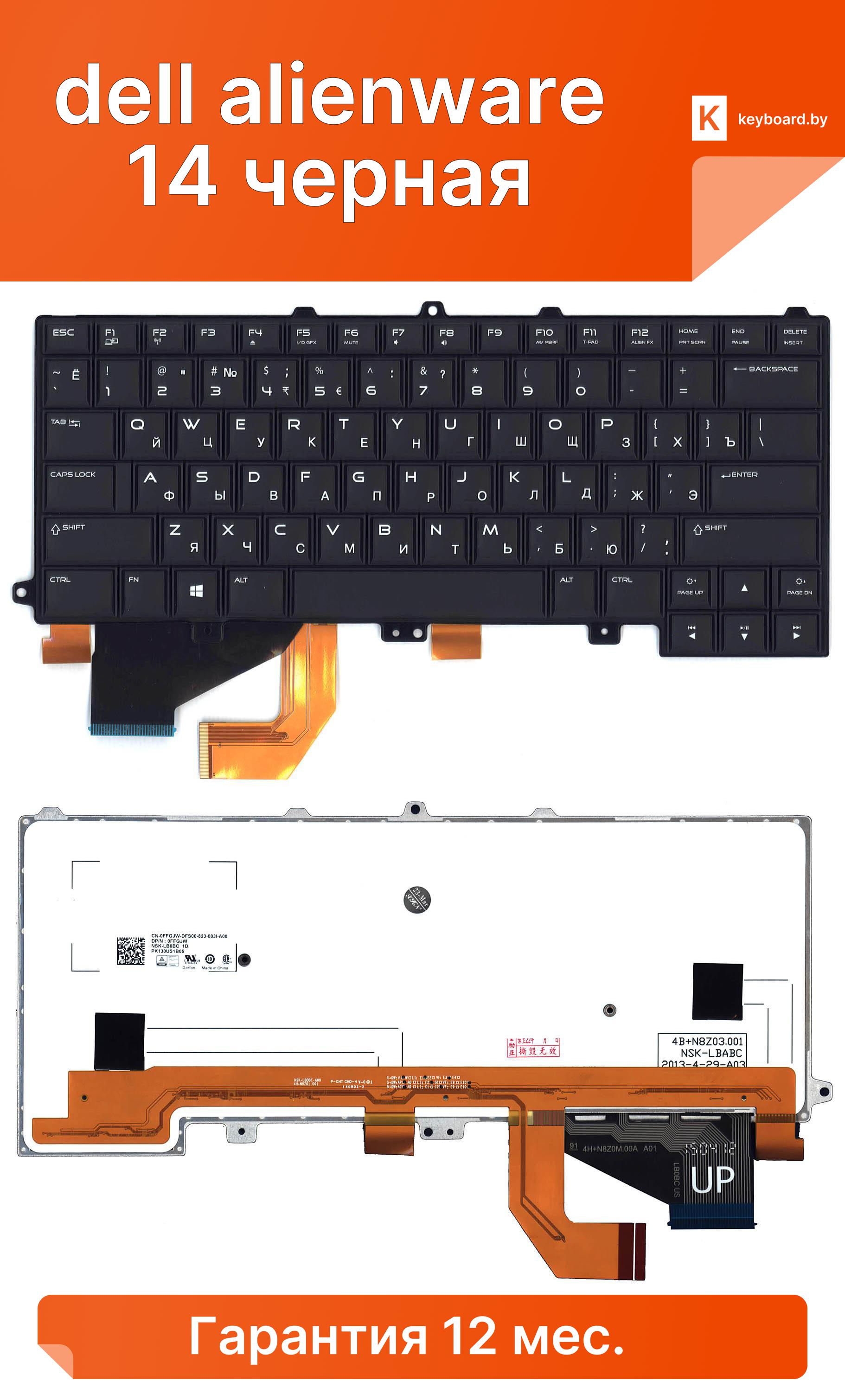 Клавиатура для ноутбука dell alienware 14 черная