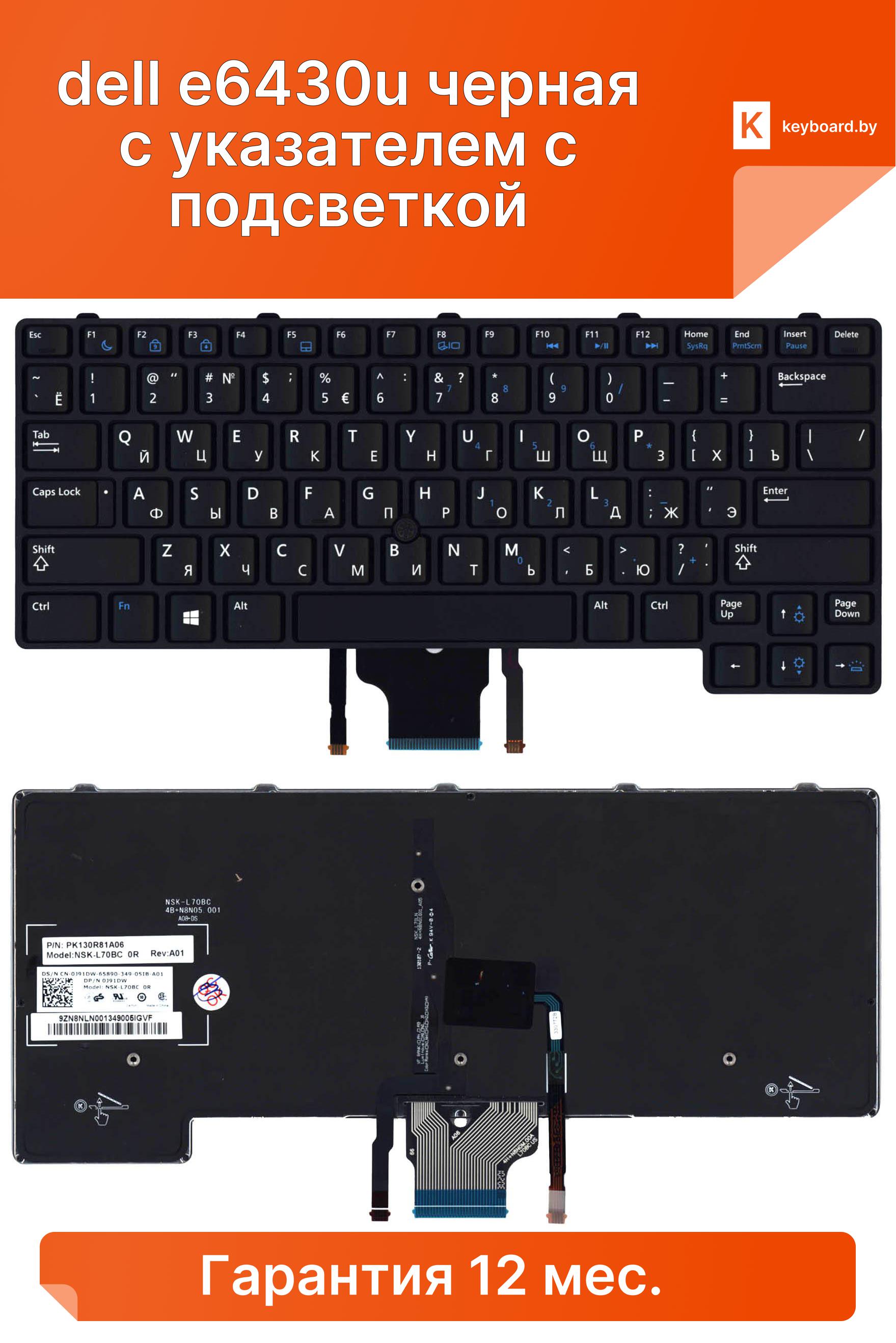Клавиатура для ноутбука dell e6430u черная с указателем с подсветкой