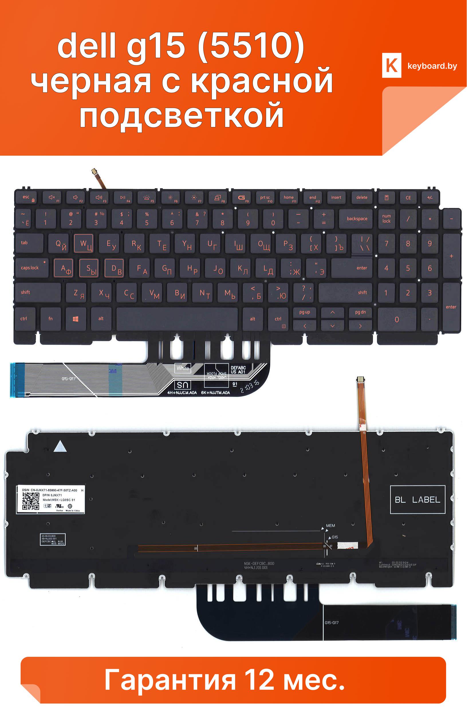 Клавиатура для ноутбука dell g15 (5510) черная с красной подсветкой