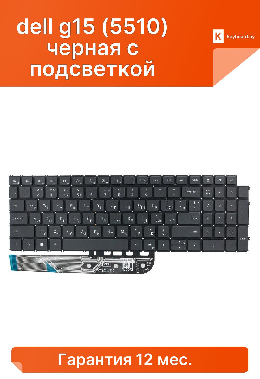 Клавиатура для ноутбука dell g15 (5510) черная с подсветкой