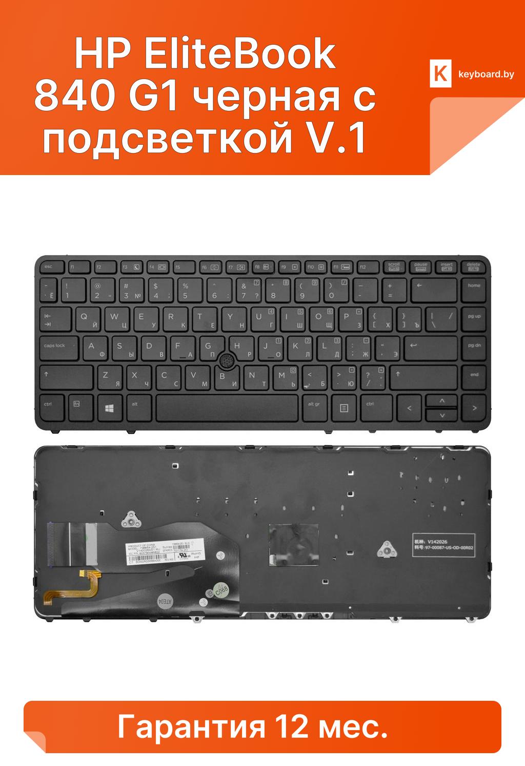 Клавиатура для ноутбука HP EliteBook 840 G1 черная с подсветкой V.1