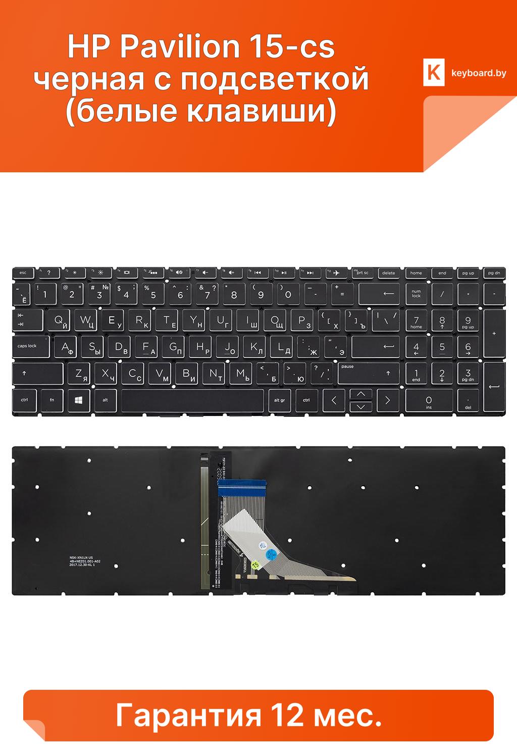 Клавиатура для ноутбука HP Pavilion 15-cs черная с подсветкой (белые клавиши)