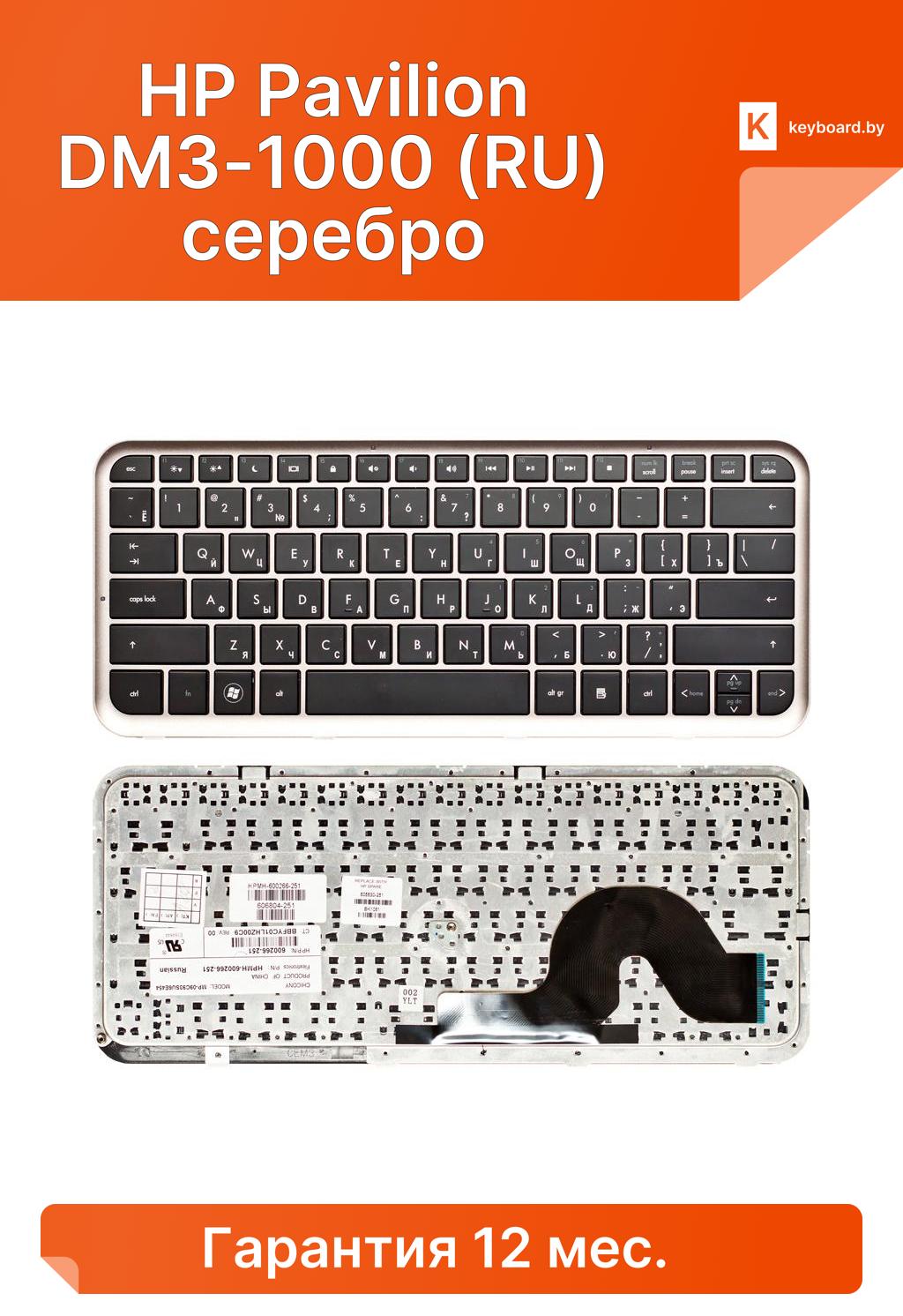 Клавиатура для ноутбука hp pavilion dm3-1000 (ru) серебро
