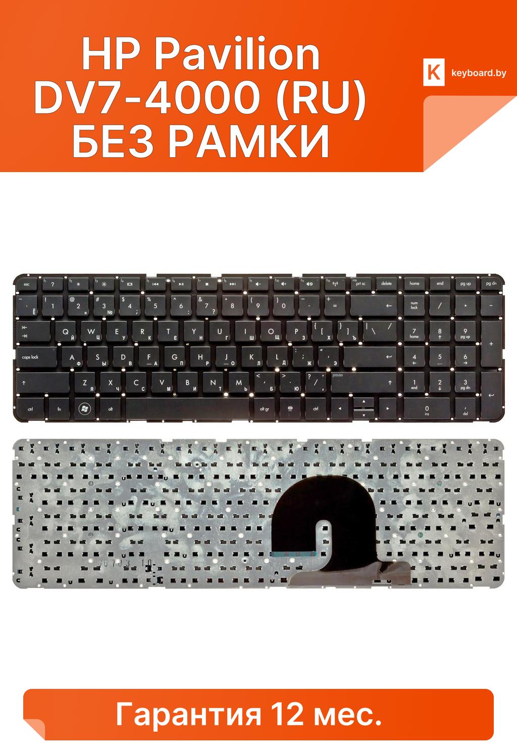 Клавиатура для ноутбука hp pavilion dv7-4000 (ru) без рамки