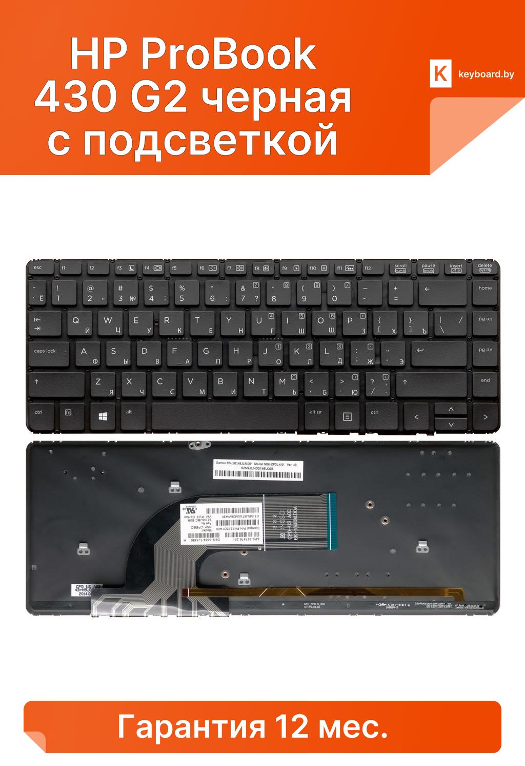 Клавиатура для ноутбука для HP ProBook 430 G2 черная с подсветкой