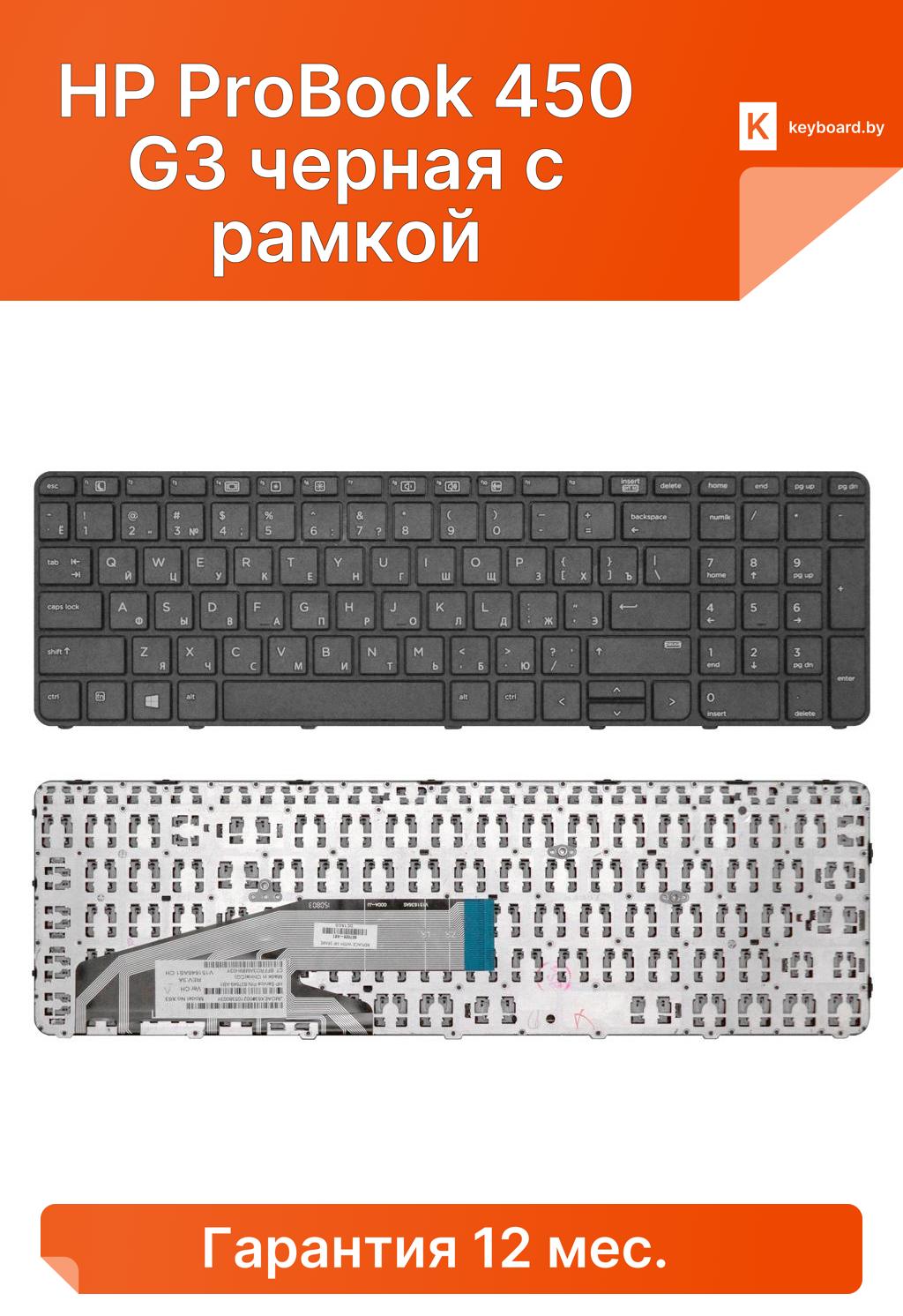 Клавиатура для ноутбука HP ProBook 450 G3 черная с рамкой