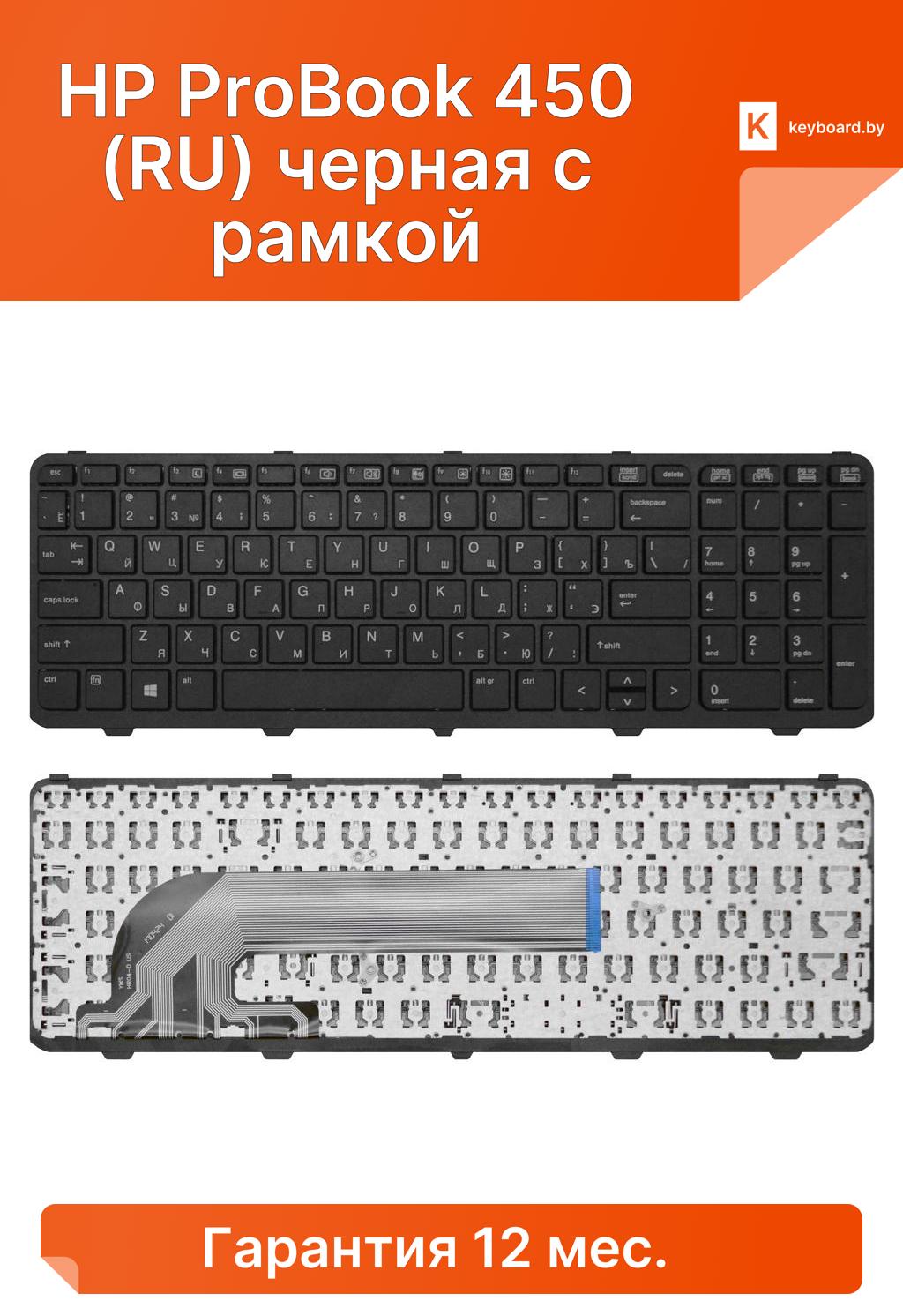 Клавиатура для ноутбука hp probook 450 (ru) черная с рамкой