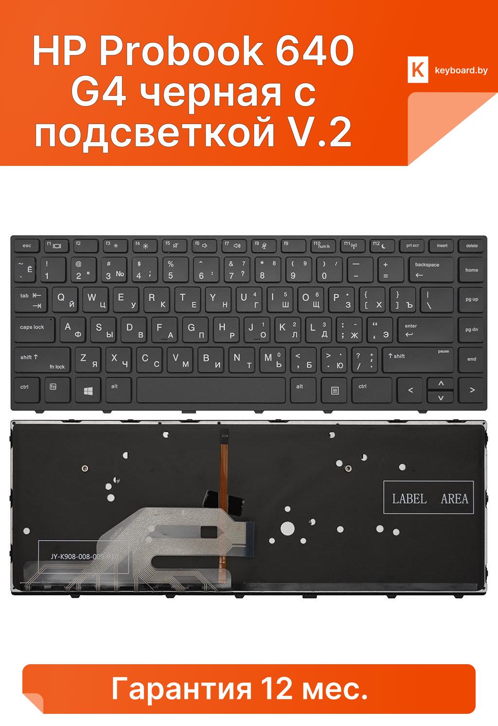 Клавиатура для ноутбука HP Probook 640 G4 черная с подсветкой V.2 Клавиатура для ноутбука HP Probook 640 G5 черная с подсветкой V.2