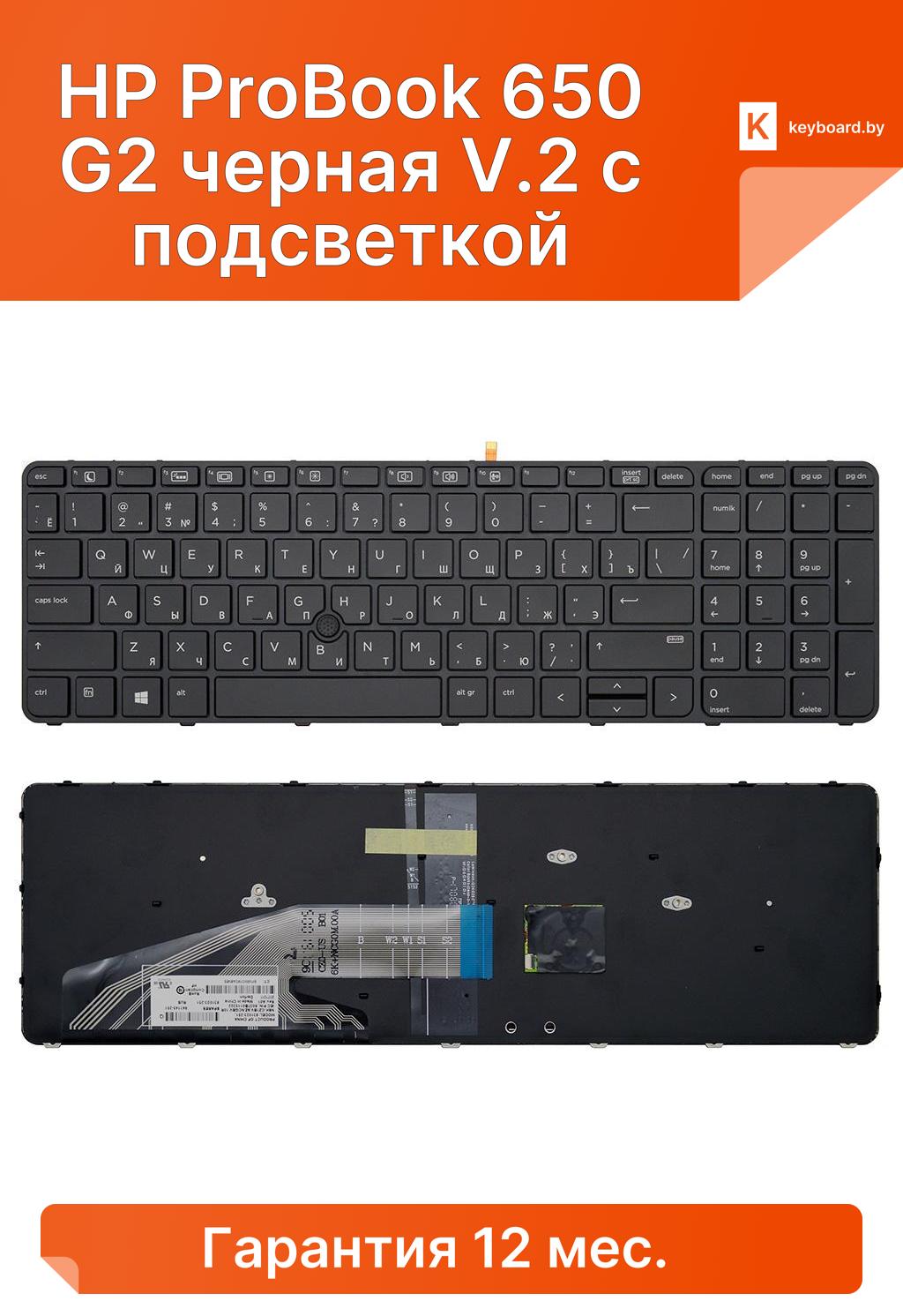 Клавиатура для ноутбука hp probook 650 g2 черная v.2 с подсветкой