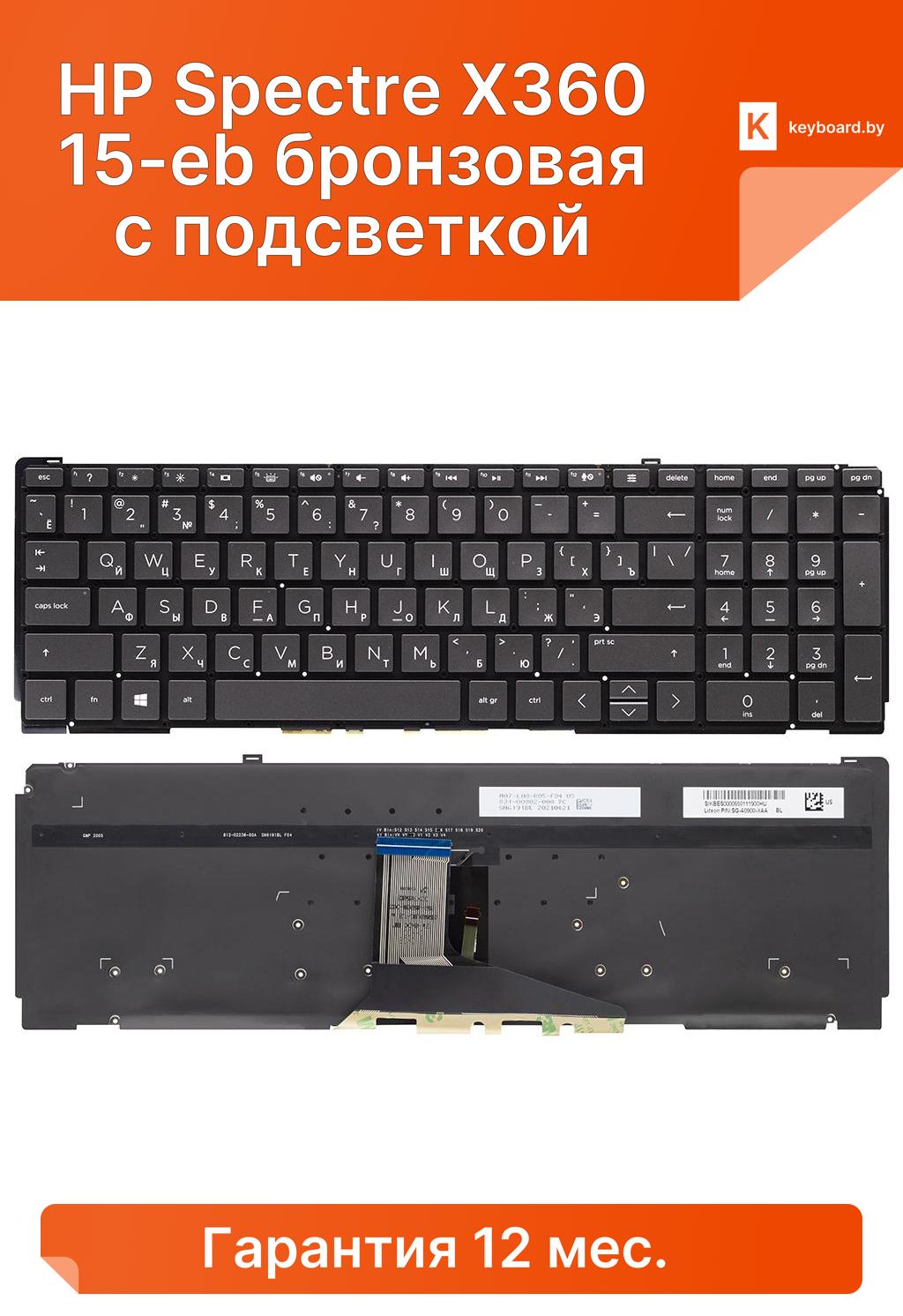 Клавиатура для ноутбука hp spectre x360 15-eb бронзовая с подсветкой