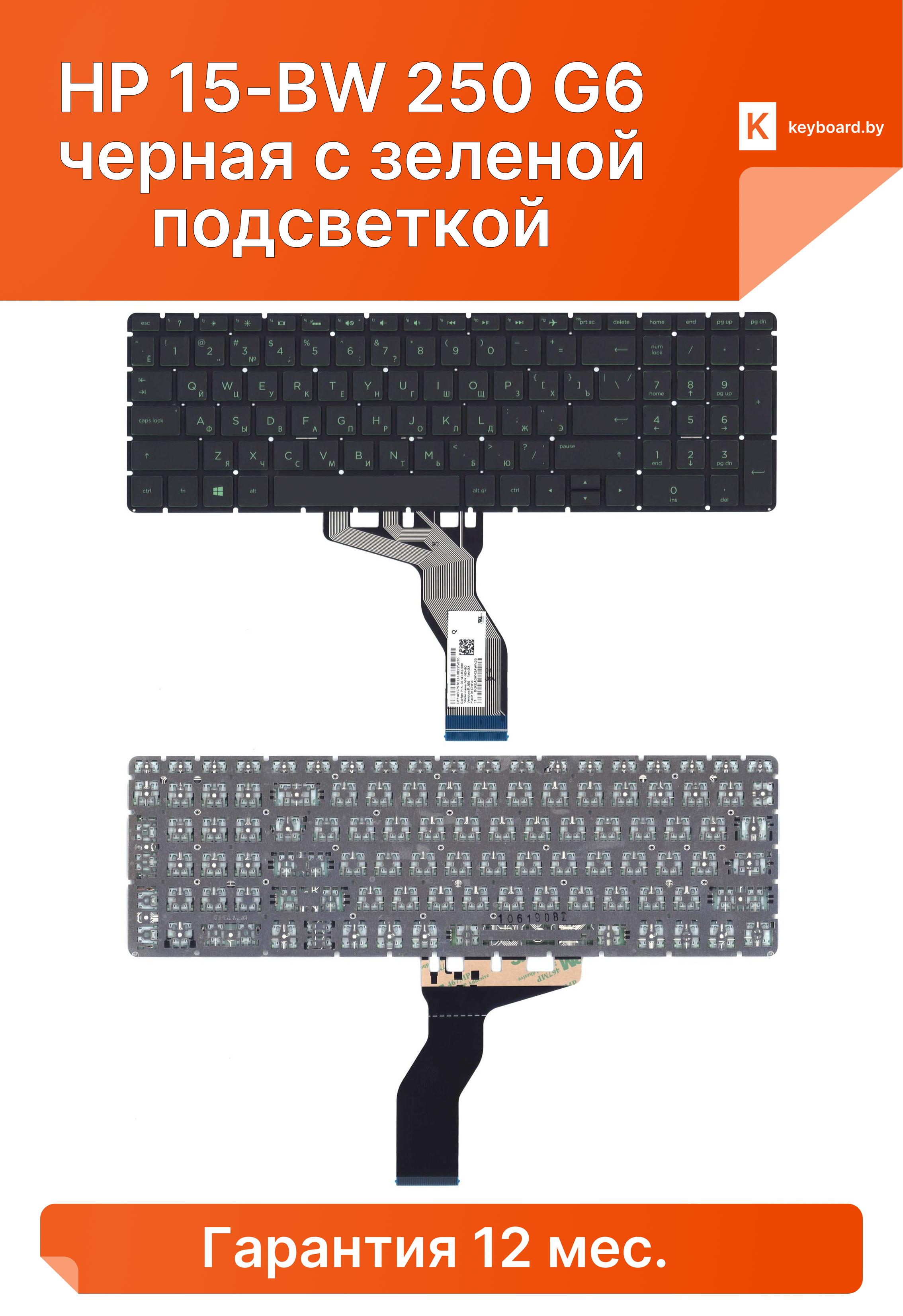 Клавиатура для ноутбука hp 15-bw 250 g6 черная с зеленой подсветкой