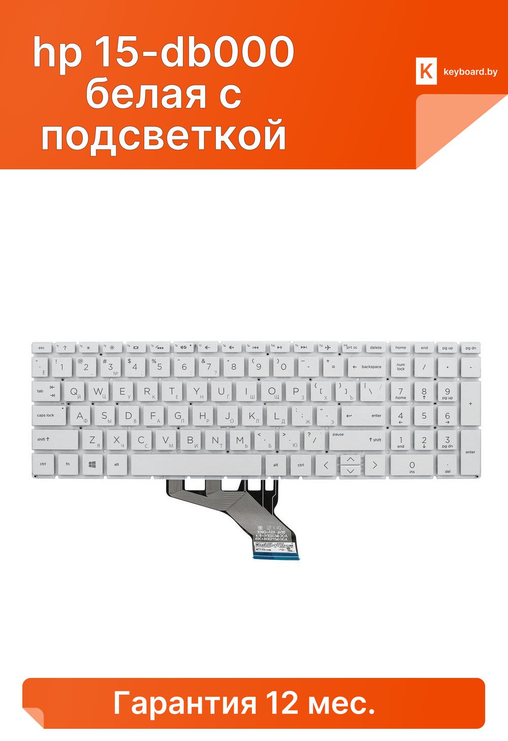 Клавиатура для ноутбука hp 15-db000 белая с подсветкой