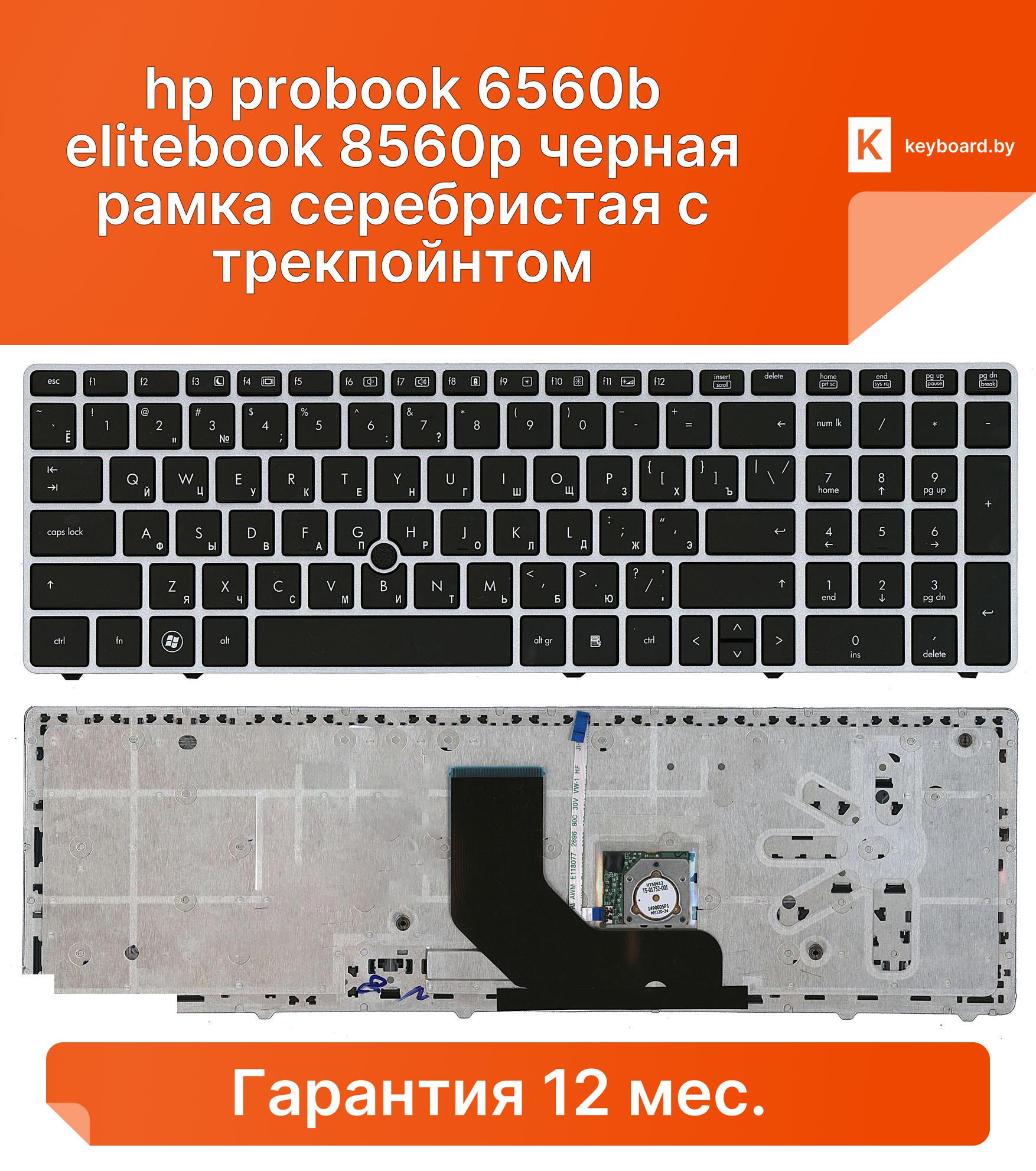 Клавиатура для ноутбука hp probook 6560b elitebook 8560p черная рамка серебристая с трекпойнтом