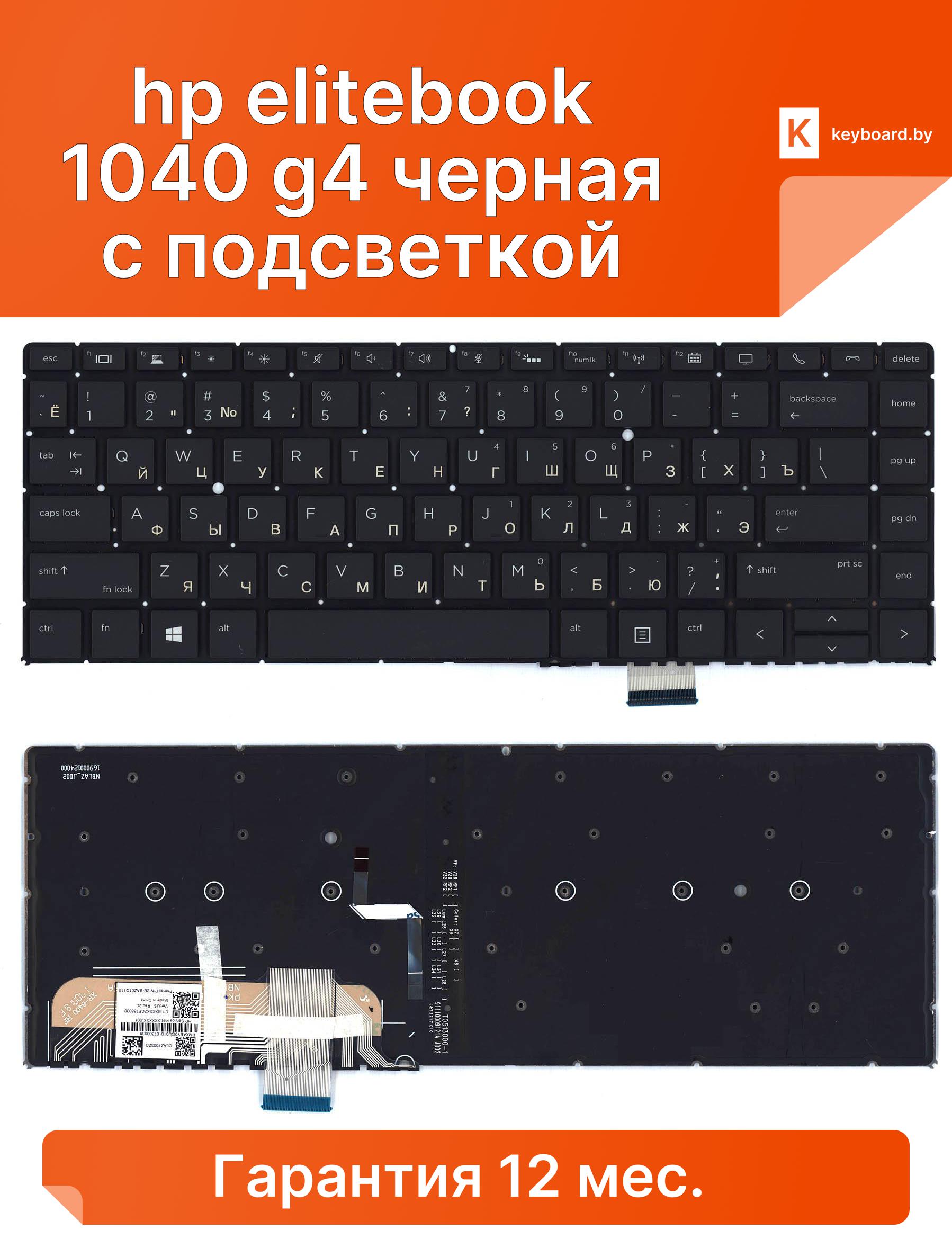 Клавиатура для ноутбука hp elitebook 1040 g4 черная с подсветкой