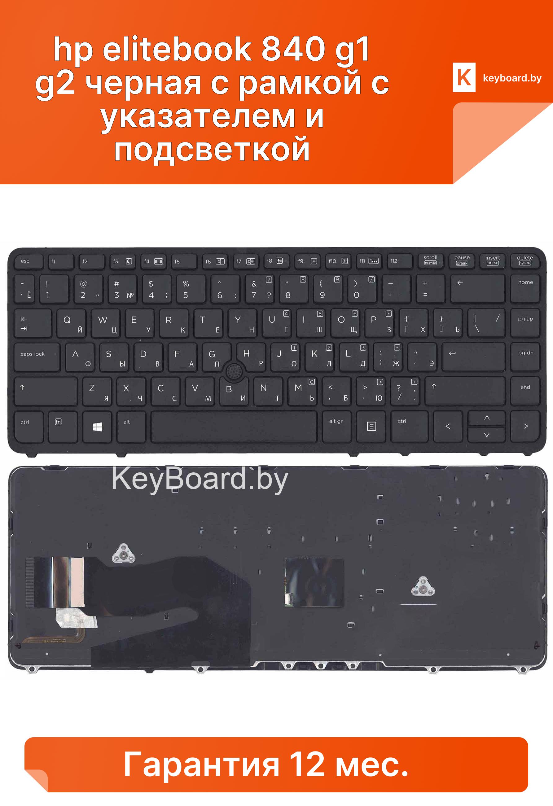 Клавиатура для ноутбука hp elitebook 840 g1 g2 черная c рамкой с указателем и подсветкой