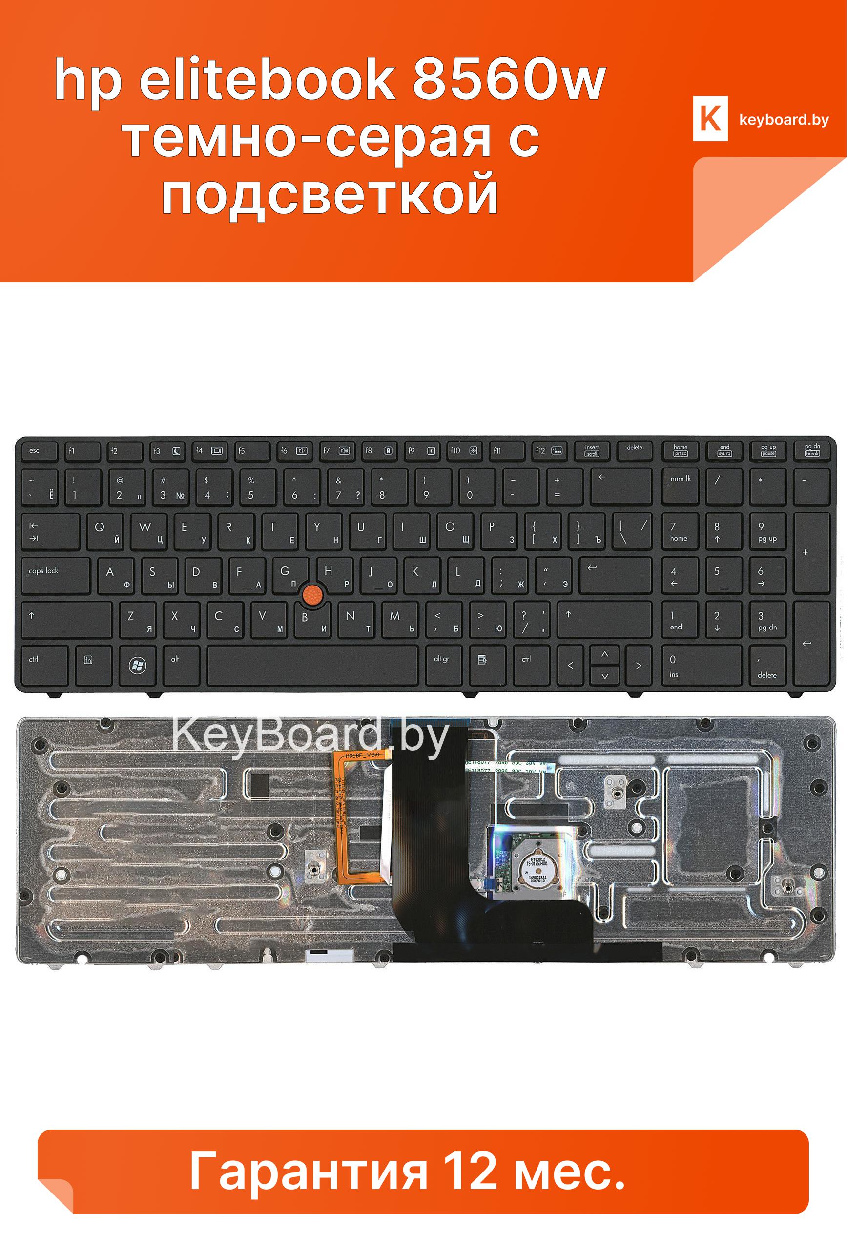 Клавиатура для ноутбука hp elitebook 8560w темно-серая с подсветкой