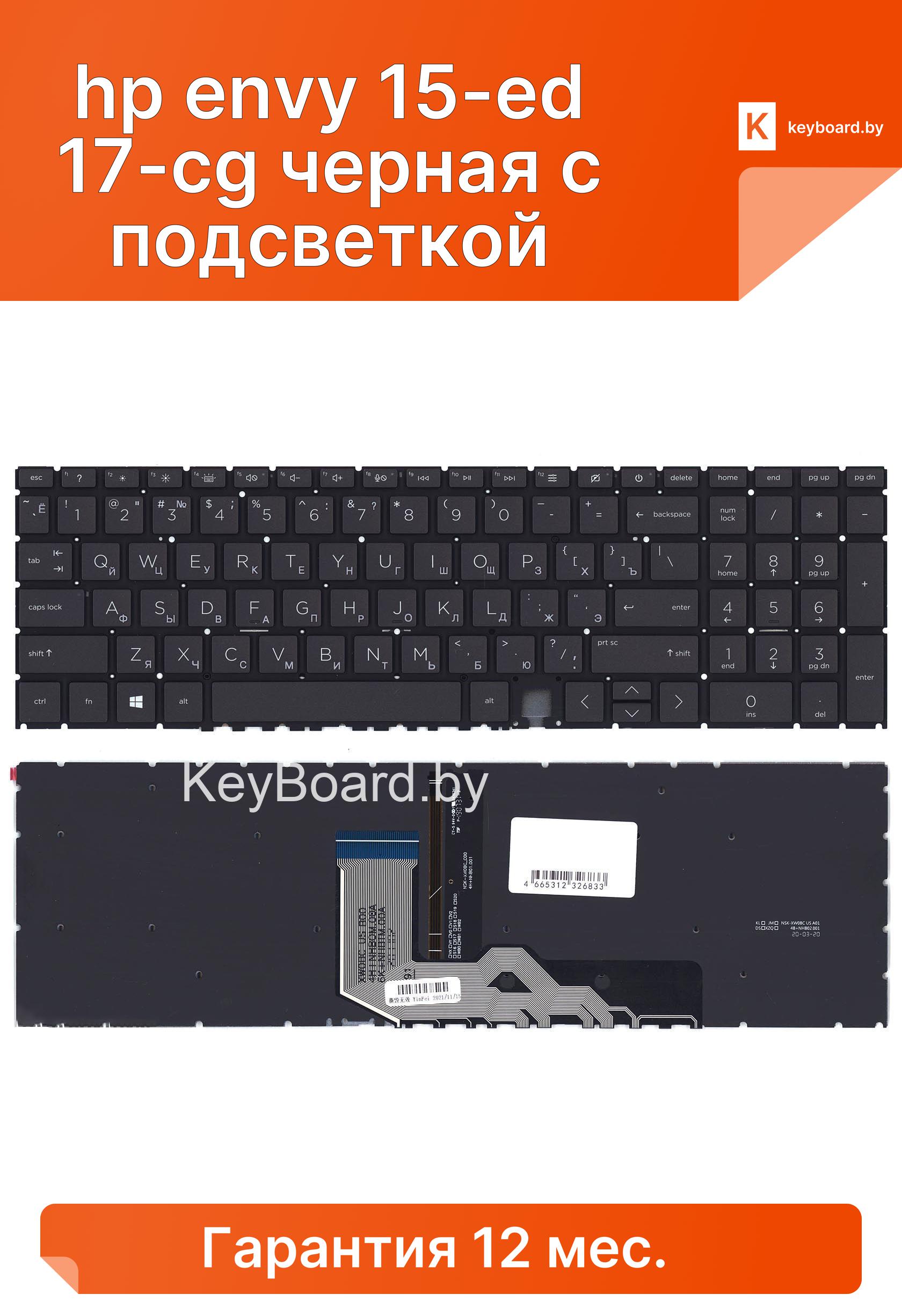 Клавиатура для ноутбука hp envy 15-ed 17-cg черная с подсветкой