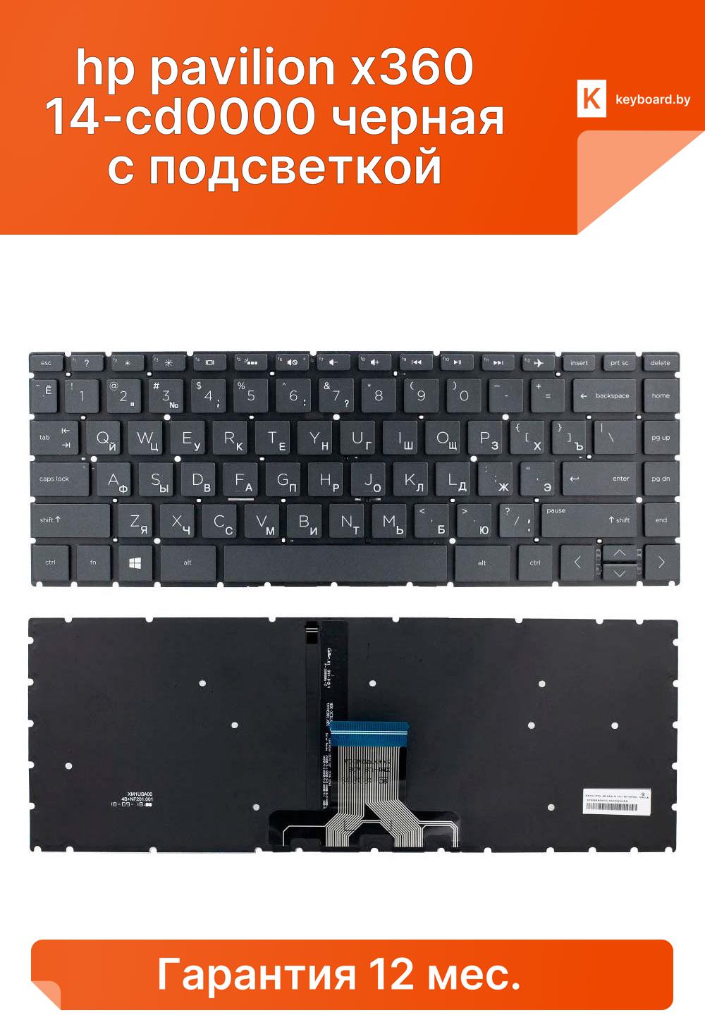 Клавиатура для ноутбука hp pavilion x360 14-cd0000 черная с подсветкой