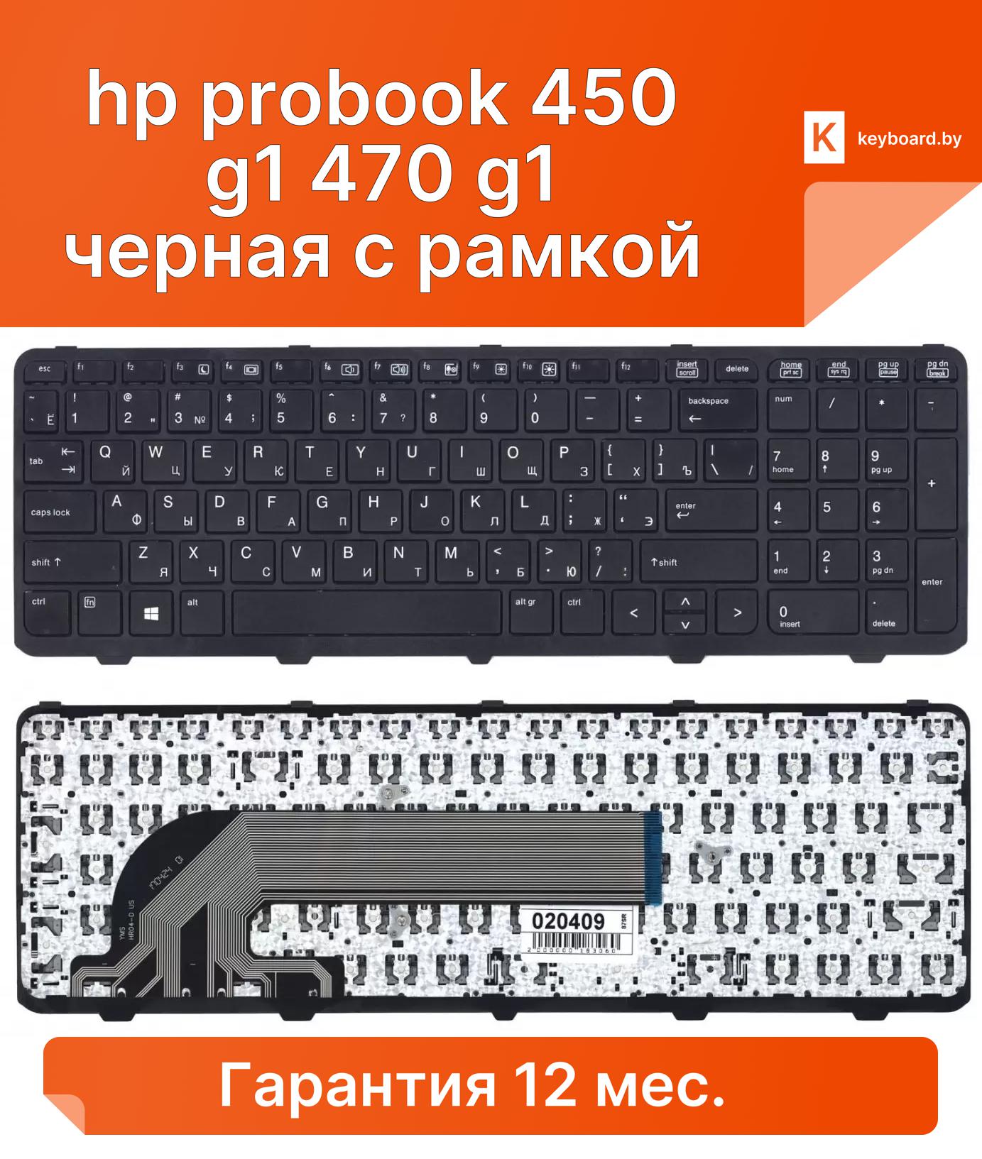 Клавиатура для ноутбука hp probook 450 g1 470 g1 черная с рамкой