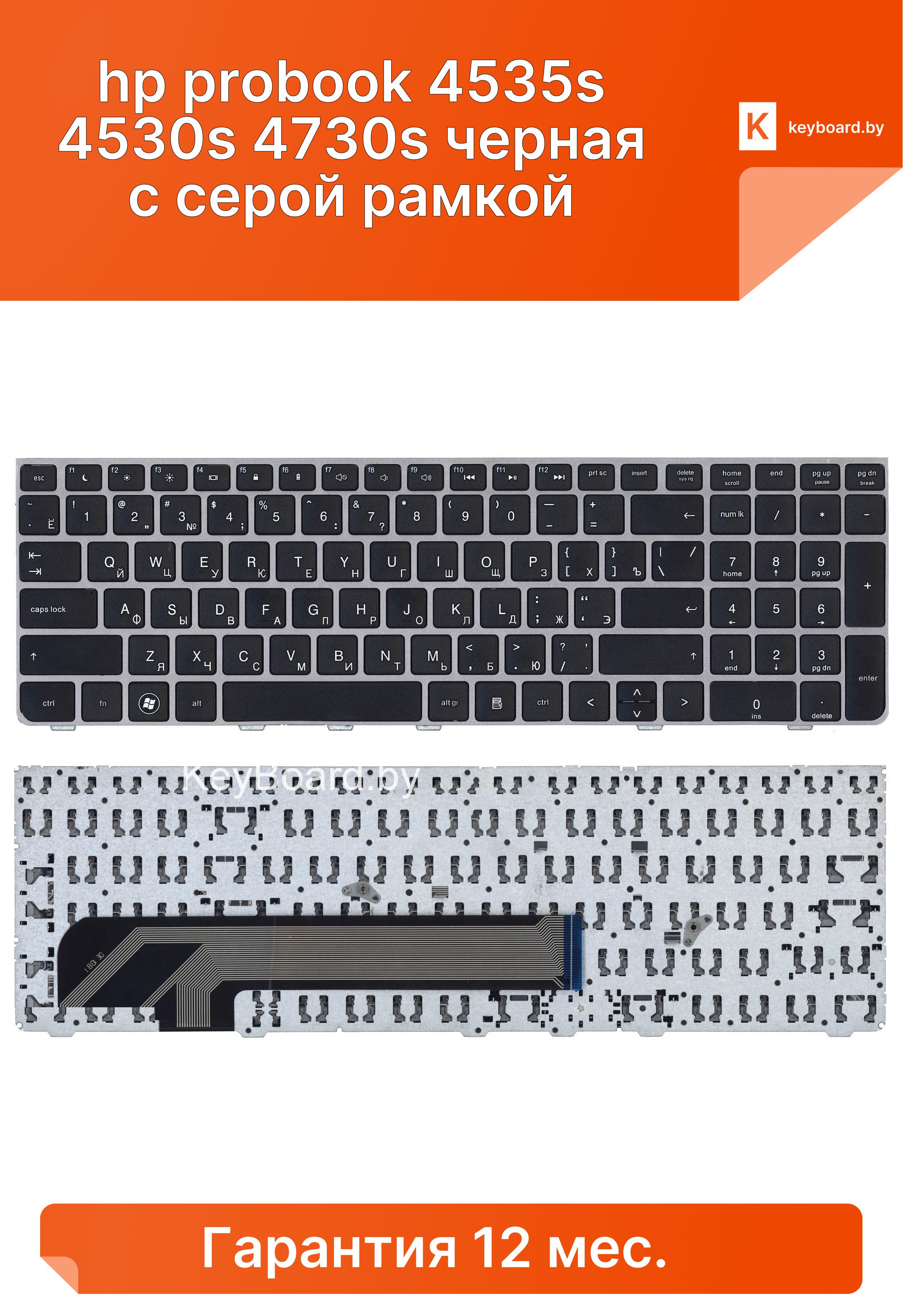 Клавиатура для ноутбука hp probook 4535s 4530s 4730s черная c серой рамкой