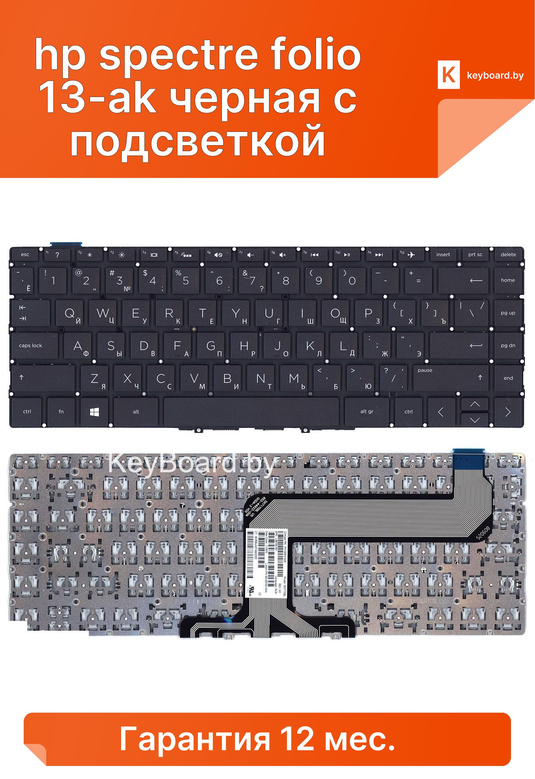 Клавиатура для ноутбука hp spectre folio 13-ak черная с подсветкой