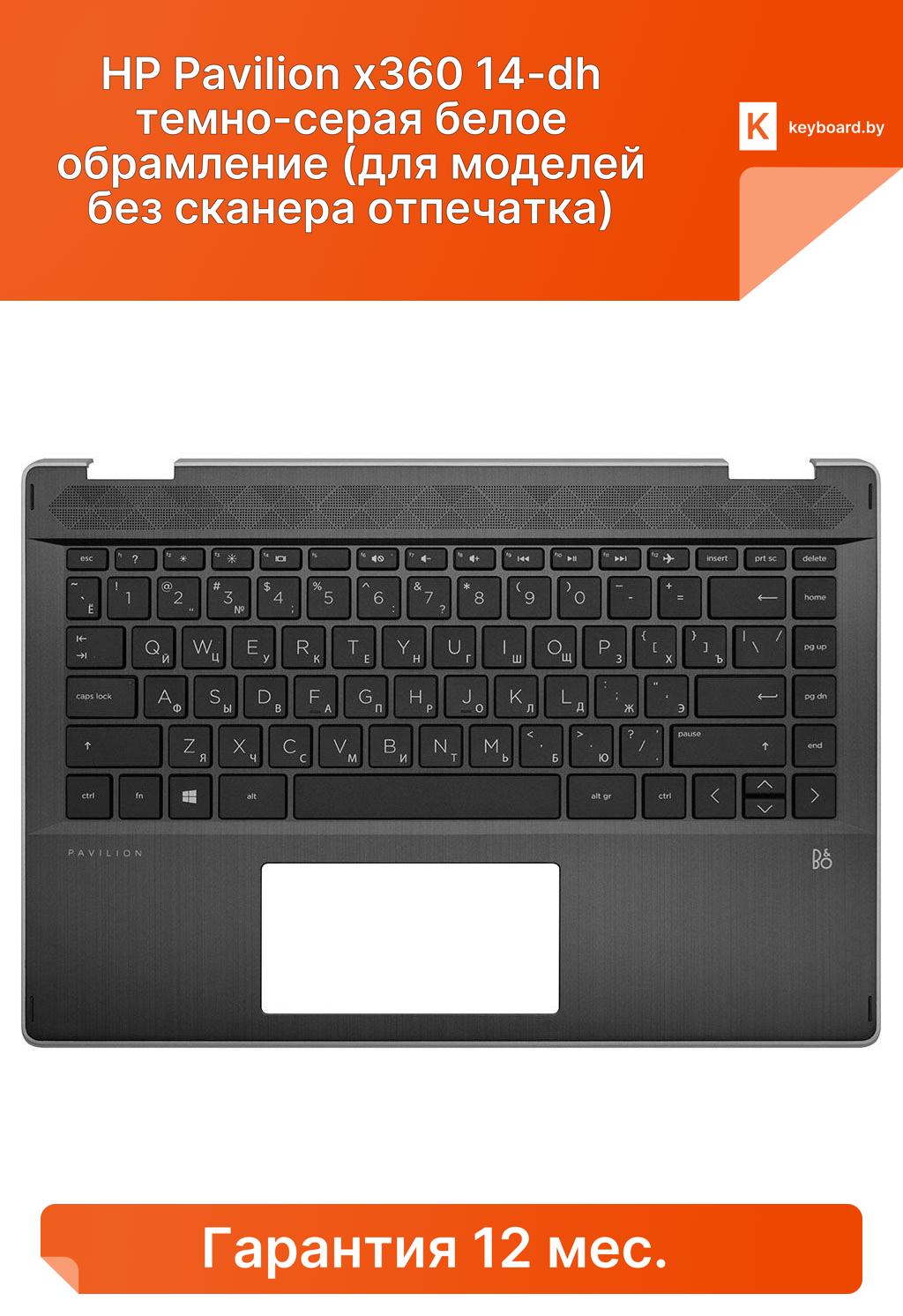 Топ-панель hp pavilion x360 14-dh темно-серая белое обрамление (для моделей без сканера отпечатка)