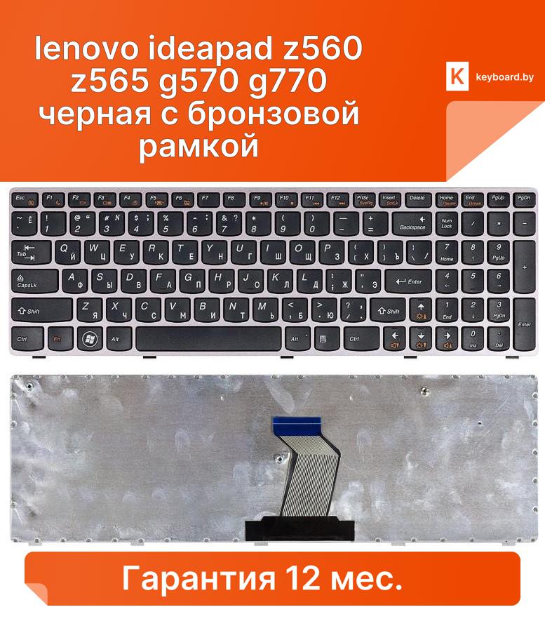 Краткое наименование Клавиатура Lenovo Z560 черная с бронзовой рамкой Совместимый бренд Lenovo IBM Цвет Черный