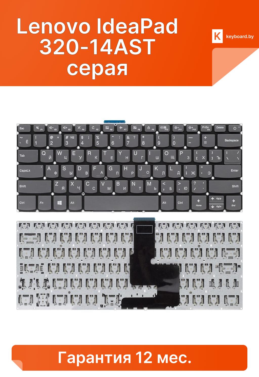 Клавиатура для ноутбука для Lenovo IdeaPad 320-14AST серая