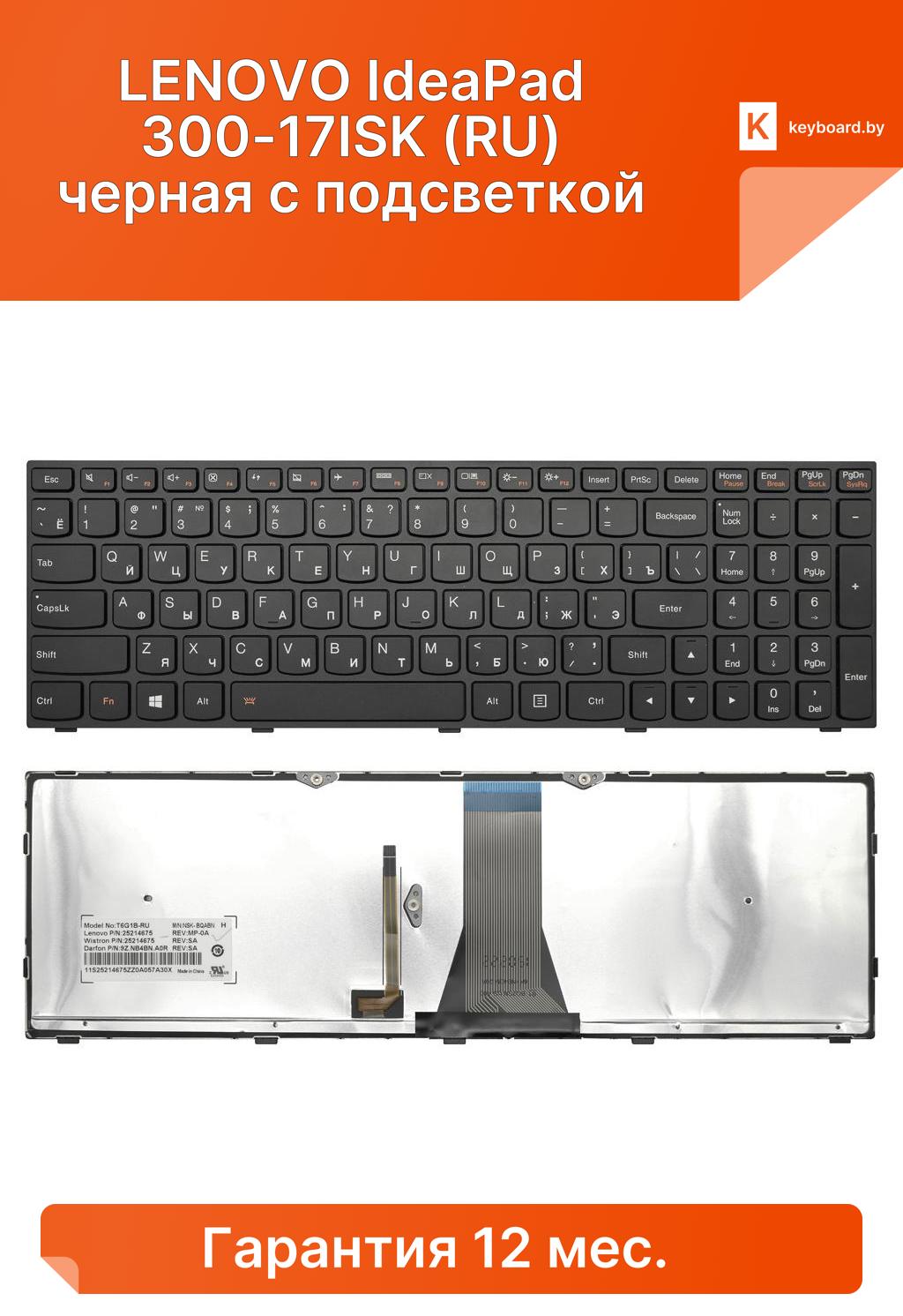 Клавиатура для ноутбука lenovo ideapad 300-17isk (ru) черная с подсветкой