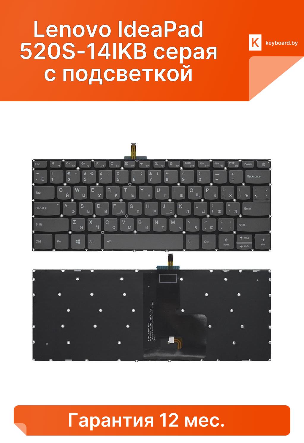 Клавиатура для ноутбука lenovo ideapad 520s-14ikb серая с подсветкой