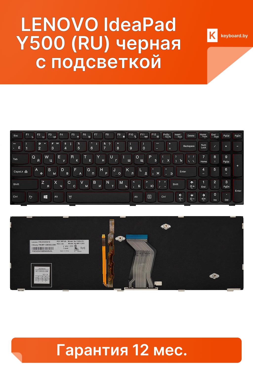 Клавиатура для ноутбука lenovo ideapad y500 (ru) черная с подсветкой