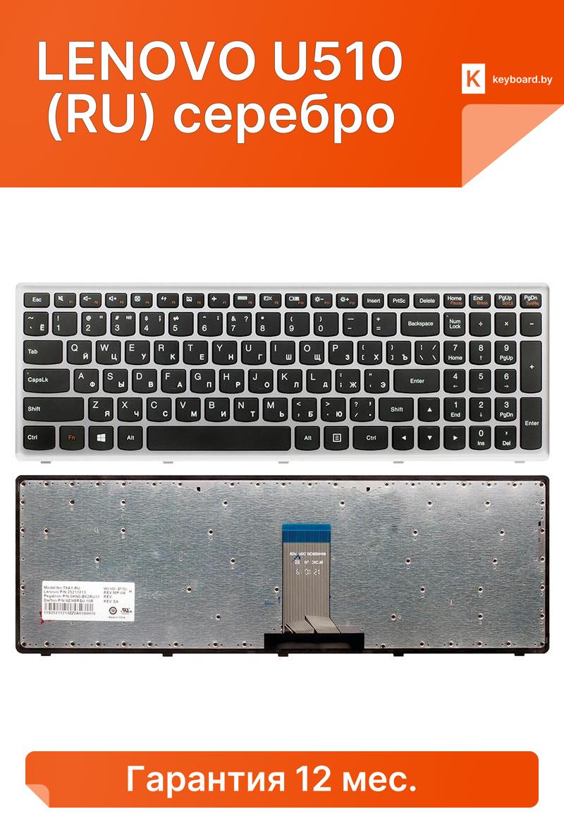 Клавиатура для ноутбука lenovo u510 (ru) серебро