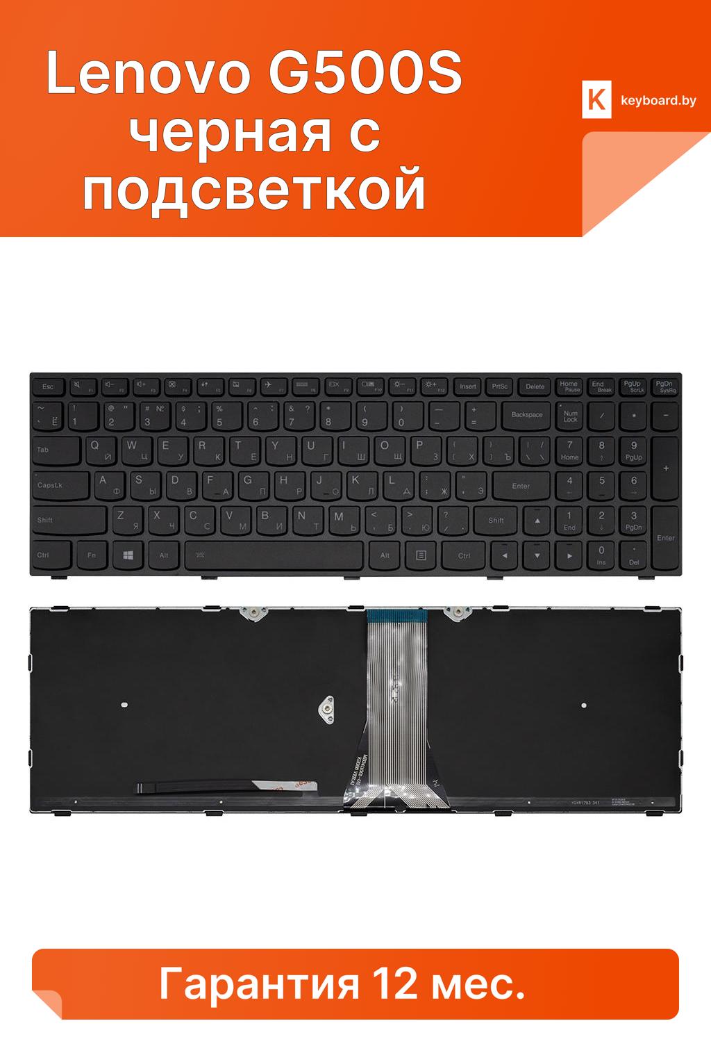 Клавиатура для ноутбука для Lenovo G500S черная с подсветкой