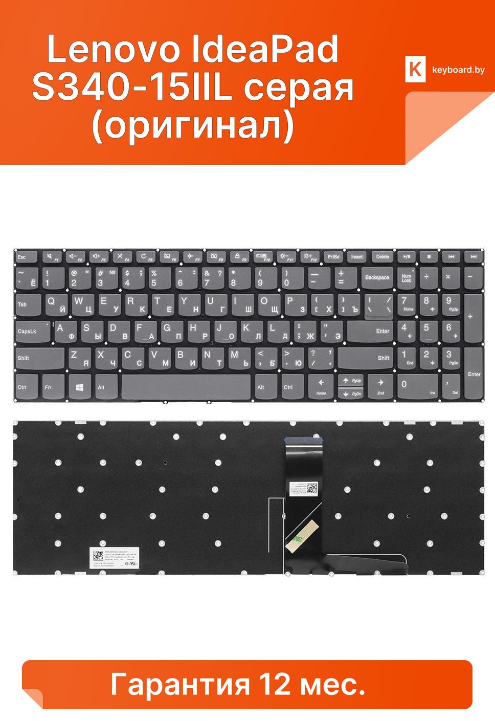 Клавиатура для ноутбука для Lenovo IdeaPad S340-15IWL серая (оригинал)