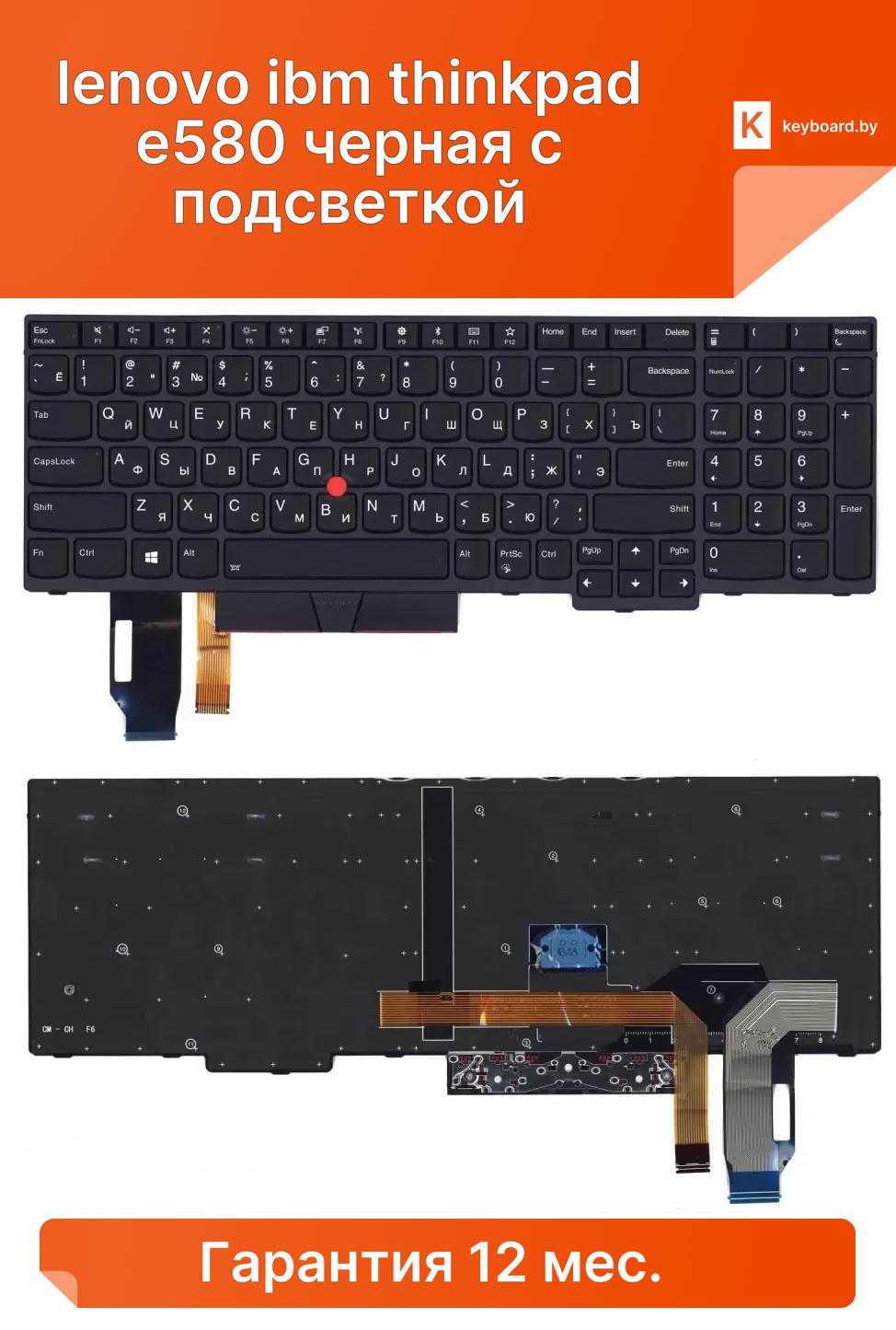 Клавиатура для ноутбука lenovo ibm thinkpad e580 черная с подсветкой