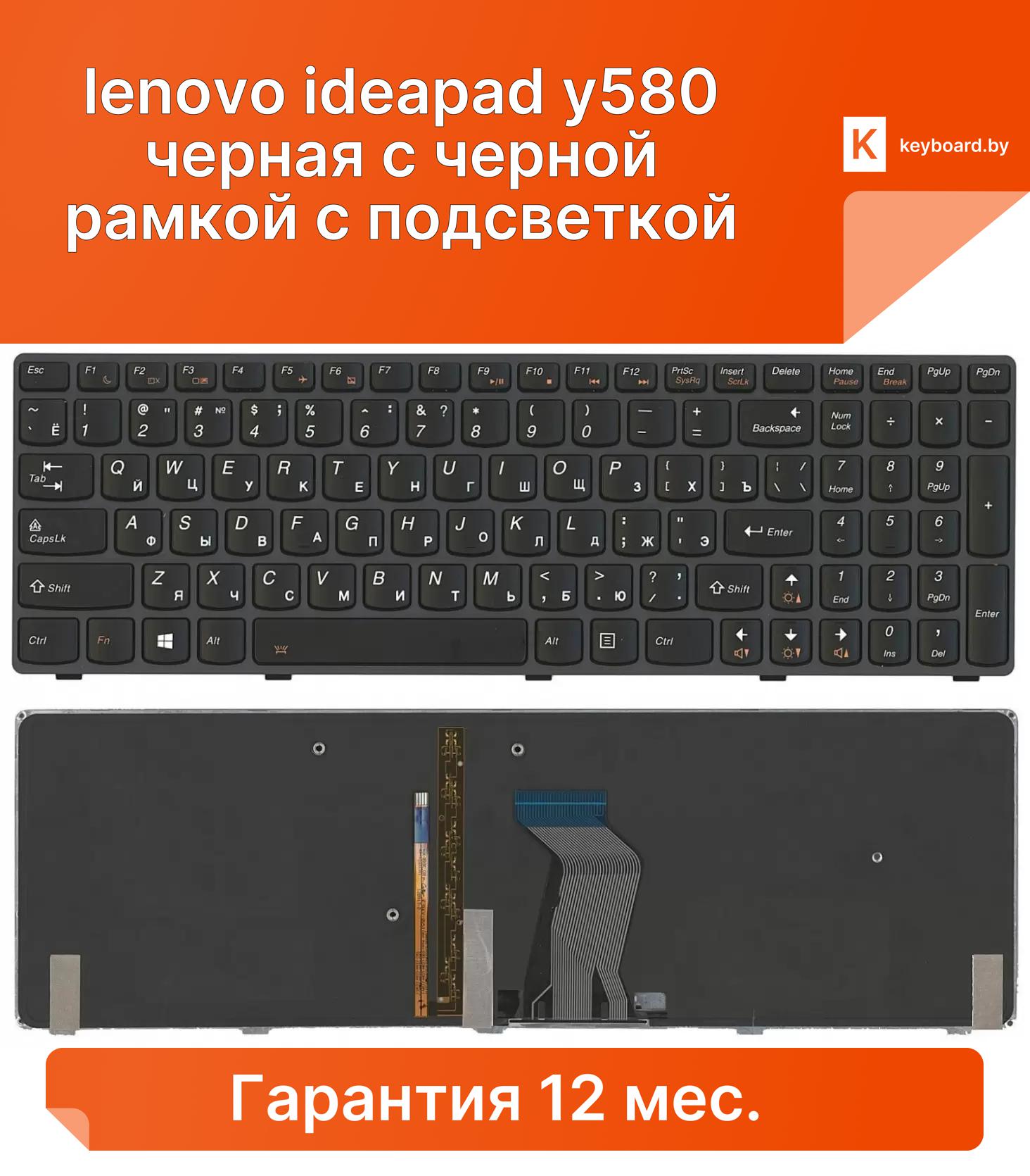 Клавиатура для ноутбука lenovo ideapad y580 черная с черной рамкой с подсветкой