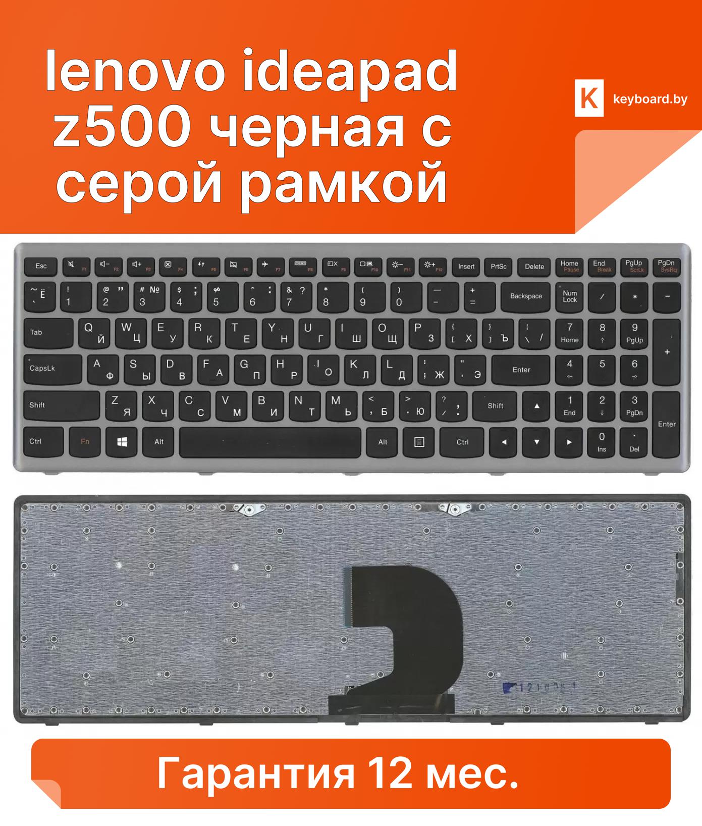 Клавиатура для ноутбука lenovo ideapad z500 черная с серой рамкой